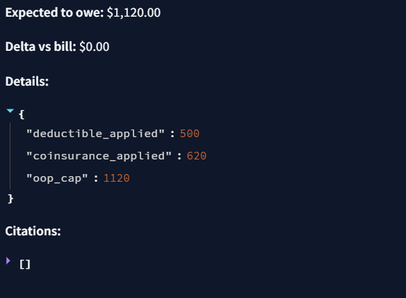 Medical bills and EOBs are a black box—tables, modifiers, footnotes, and policy fine print that most people can’t decode. We wanted a copilot that doesn’t summarize your bill; it proves it. That “proof-first” mindset drove every decision: deterministic math, table-cell citations, policy simulation, and one-click, evidence-backed appeals. Constraints (no budget, 6 days) forced us to be ruthless, inventive, and laser-focused on UX clarity and technical verifiability.