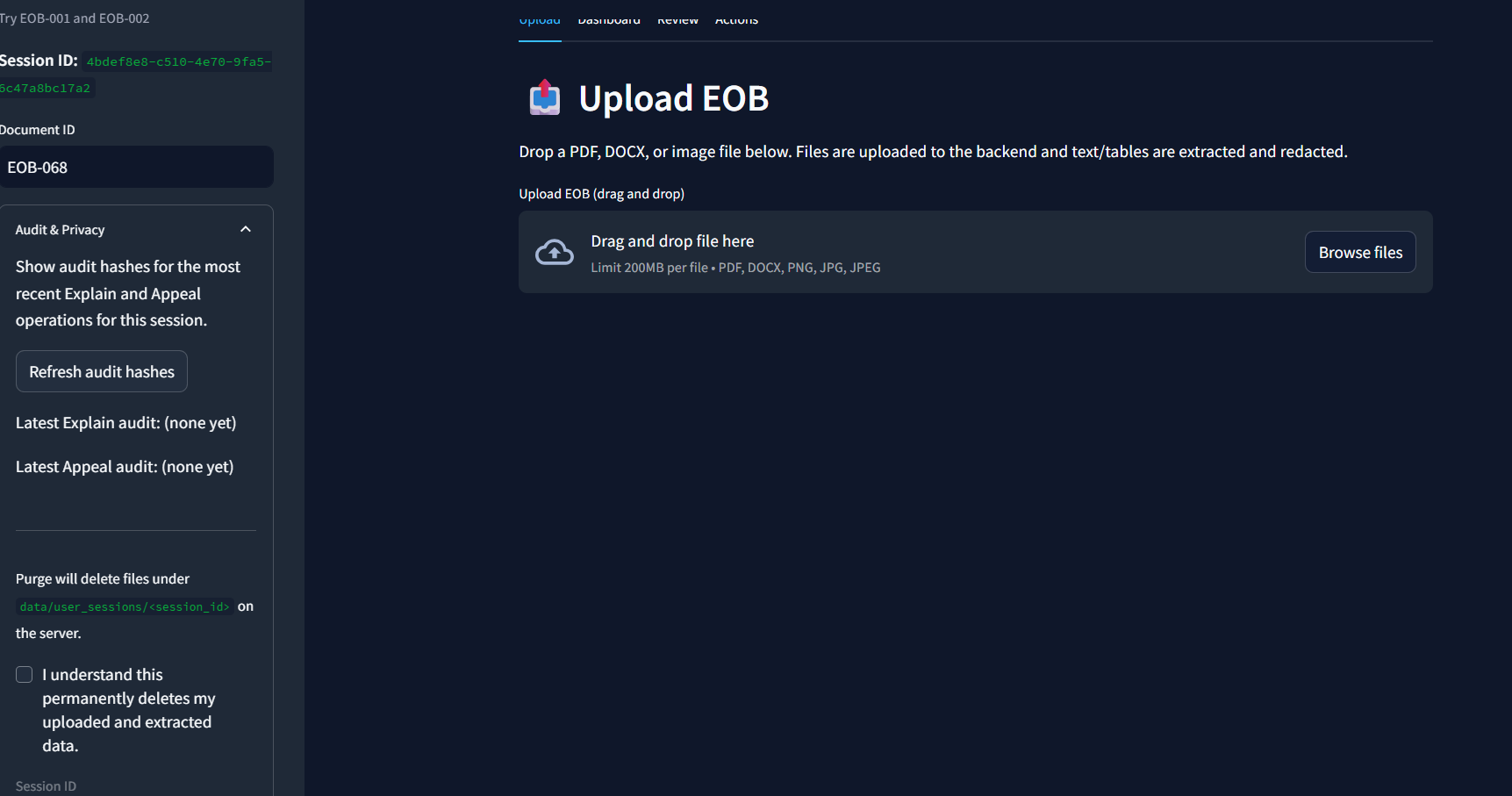 Proof-first, end-to-end: From upload → explain with table-cell citations → policy counterfactual → appeal pack with audit hash. Partner-grade retrieval: Elastic BM25+kNN+RRF with role bias and an explainable retrieval debug panel. Evidence Graph & Risk Flags: Judges can see the support graph and coding heuristics (dup charges, modifier anomalies). Exports that matter: DOCX/PDF letters that look like something a payer/provider would actually use. Trust UX: Verifiability Score ladder, warnings banner, audit trail, session purge.