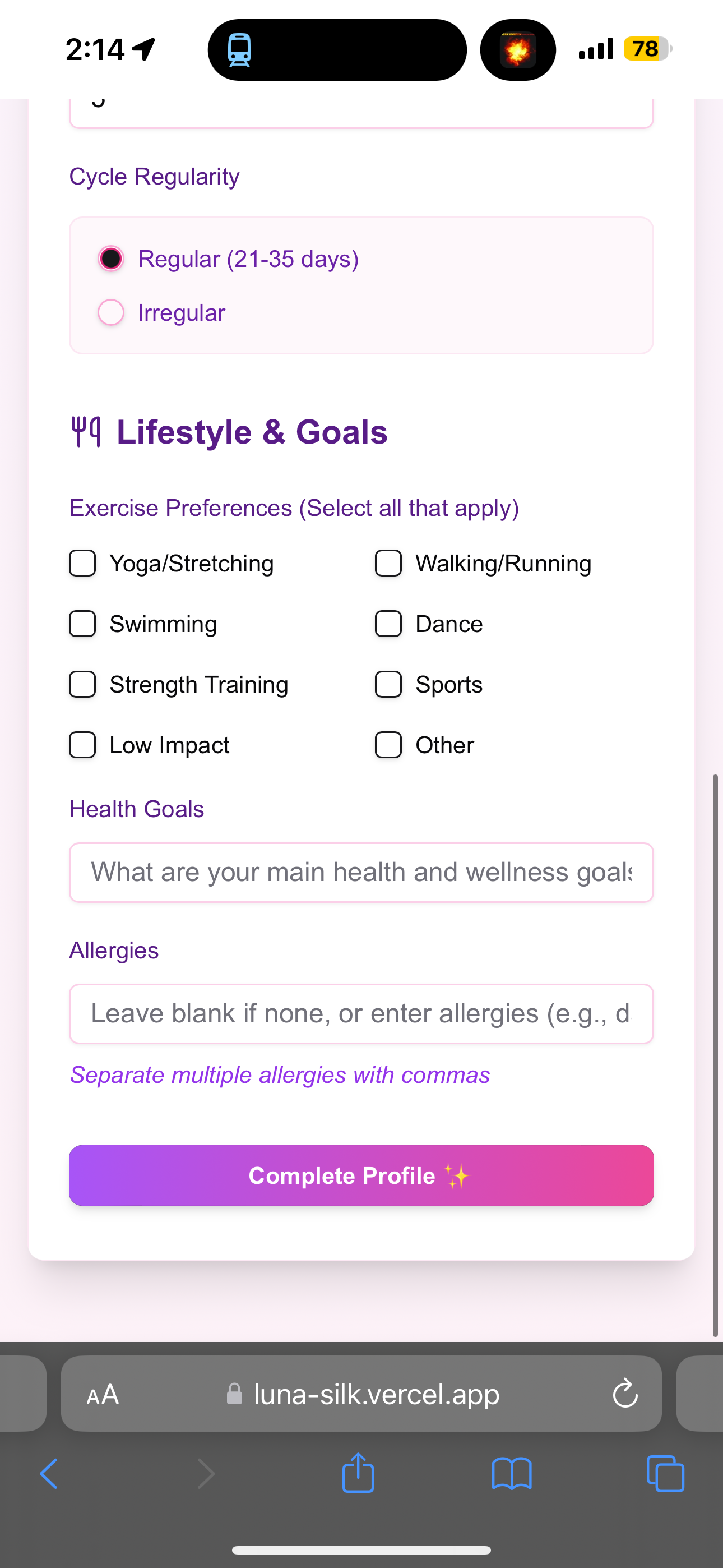 Creating and end-to-end full stack web app, that has great user interface and experience, specially tailored to women. Incorporating cultural awareness into AI recommendations required careful design considerations to meet diverse user needs. We also faced technical challenges in achieving precise AI-powered personalization for various cycle phases using Gemini’s capabilities.