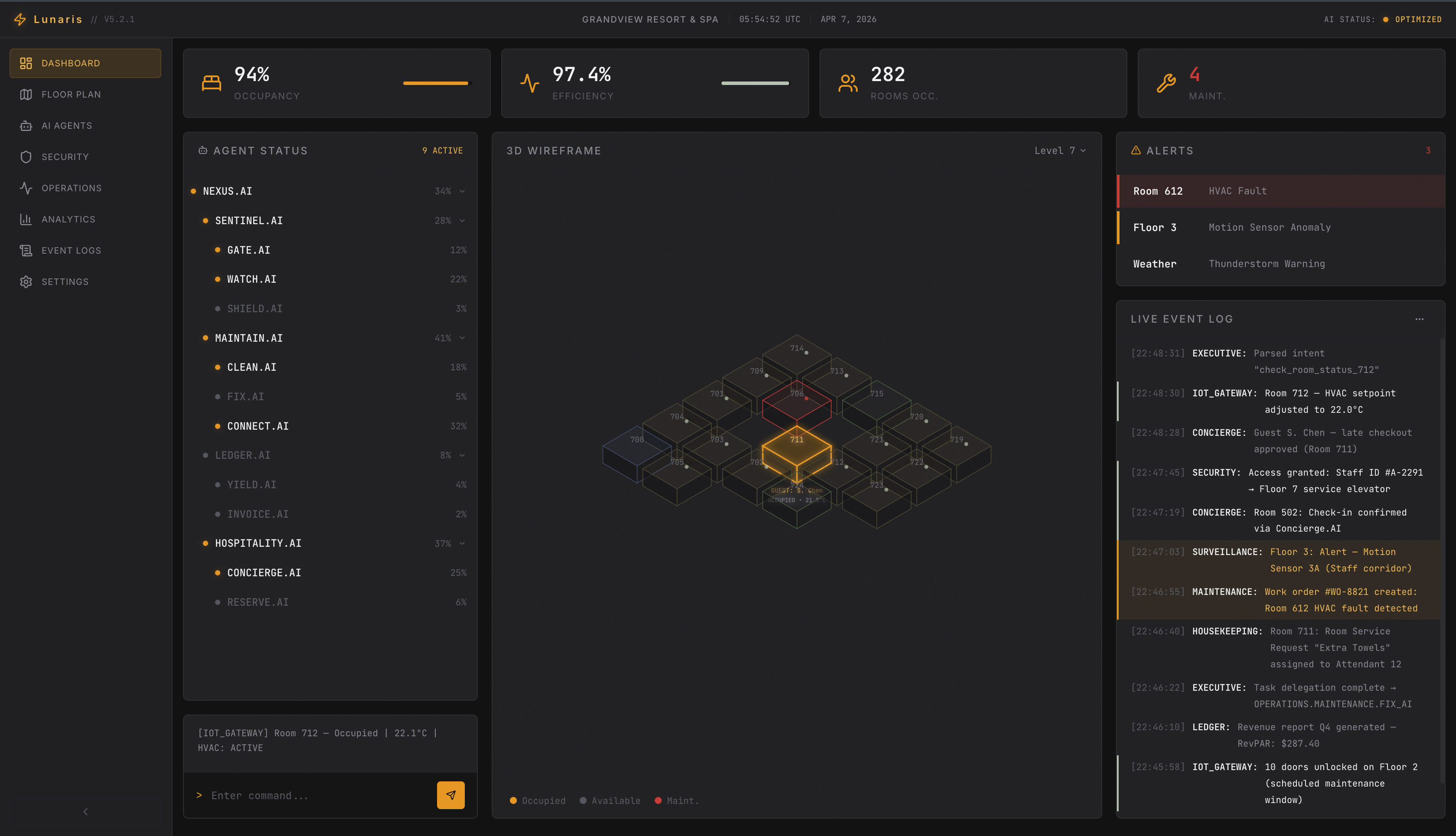 The hospitality industry runs on fragmented systems. Hotel staff juggle dozens of tools, and critical decisions fall through the cracks between departments. We asked: what if a hotel had a brain? Not a chatbot , a real AI operating system where agents reason, coordinate, and act across security, operations, and finance, while keeping humans firmly in control.