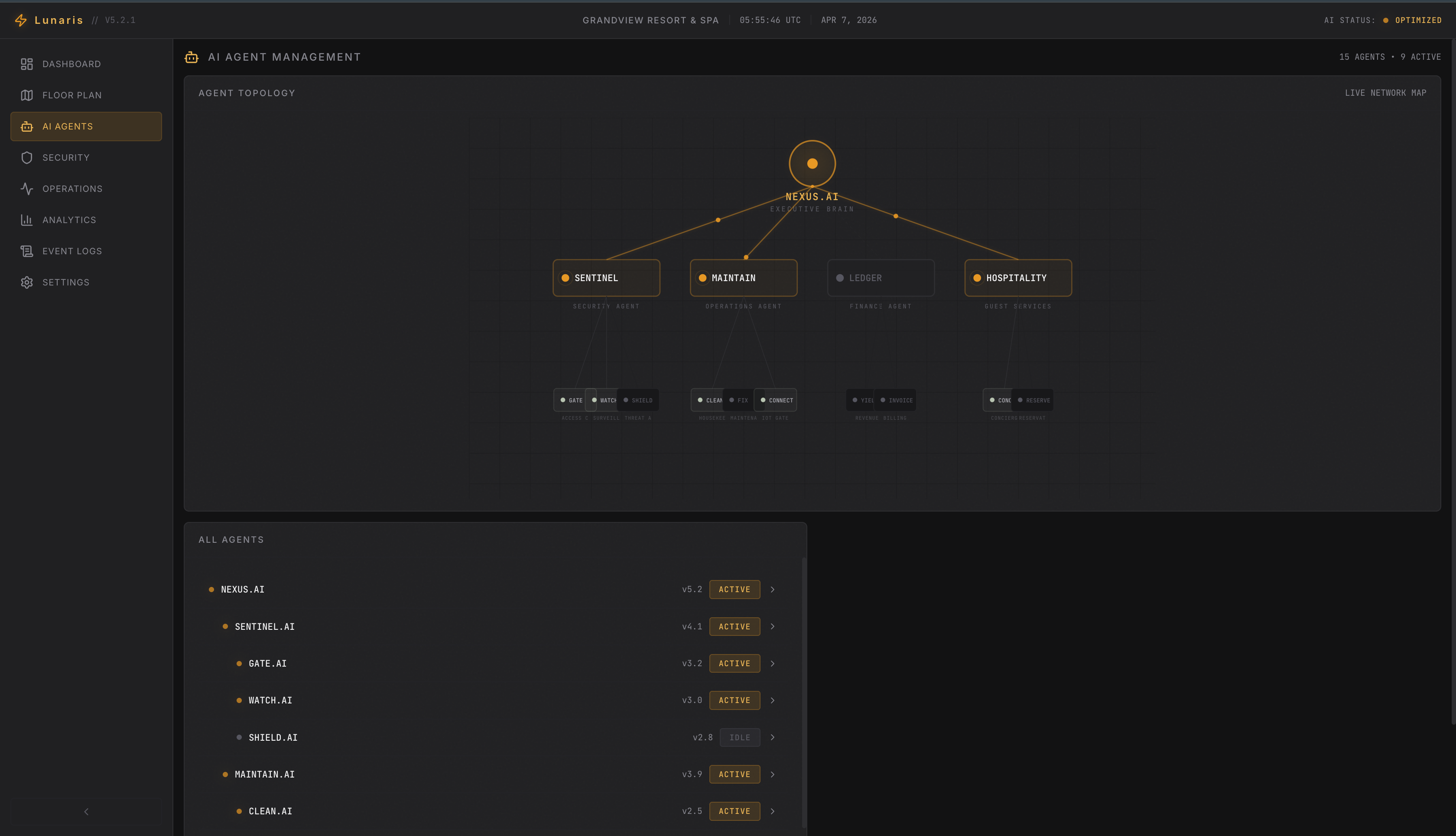 Lunaris is a hierarchical multi-agent AI system for hotel chains: