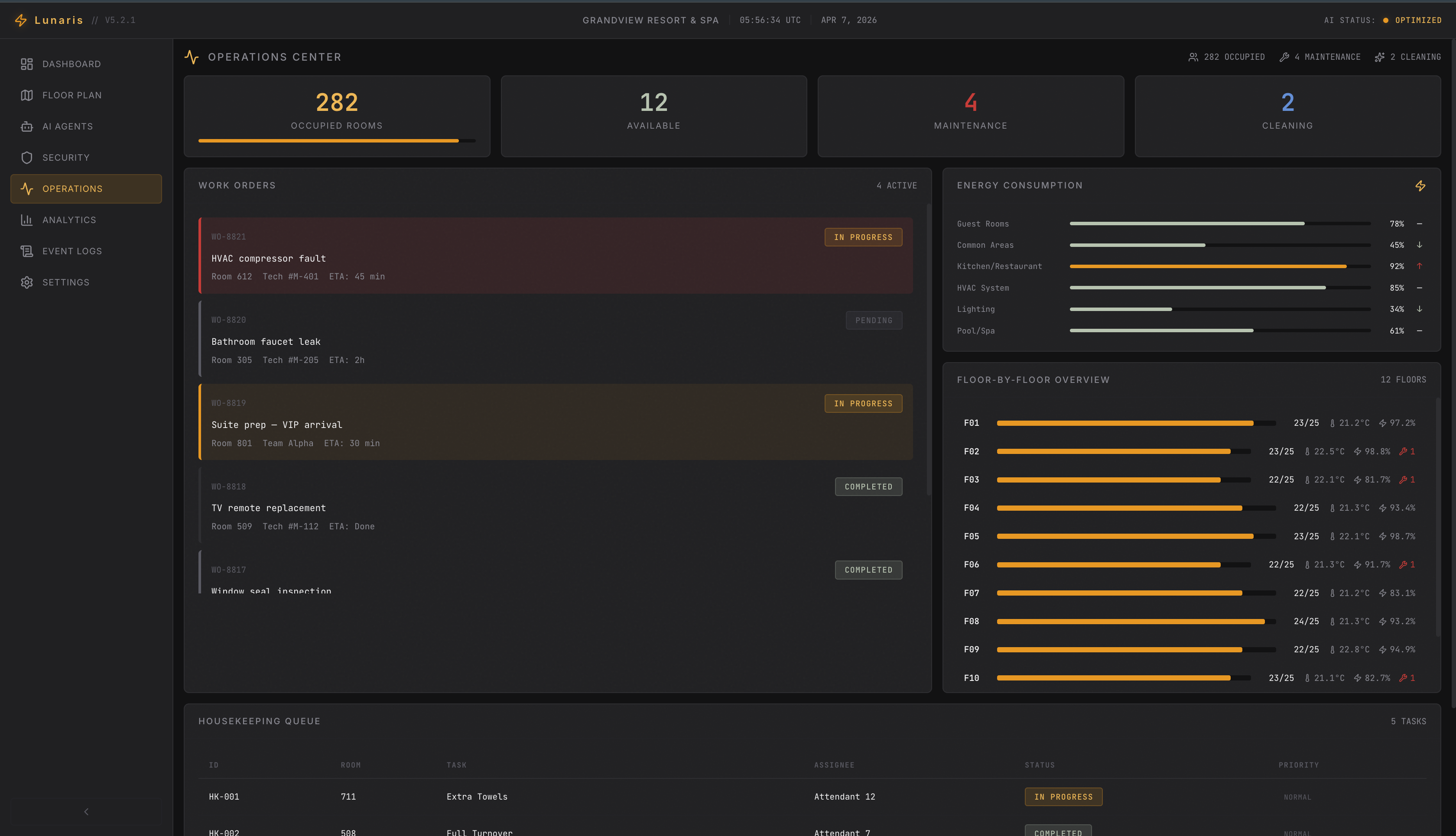 - Operations Agent manages guest notifications, bookings, and housekeeping