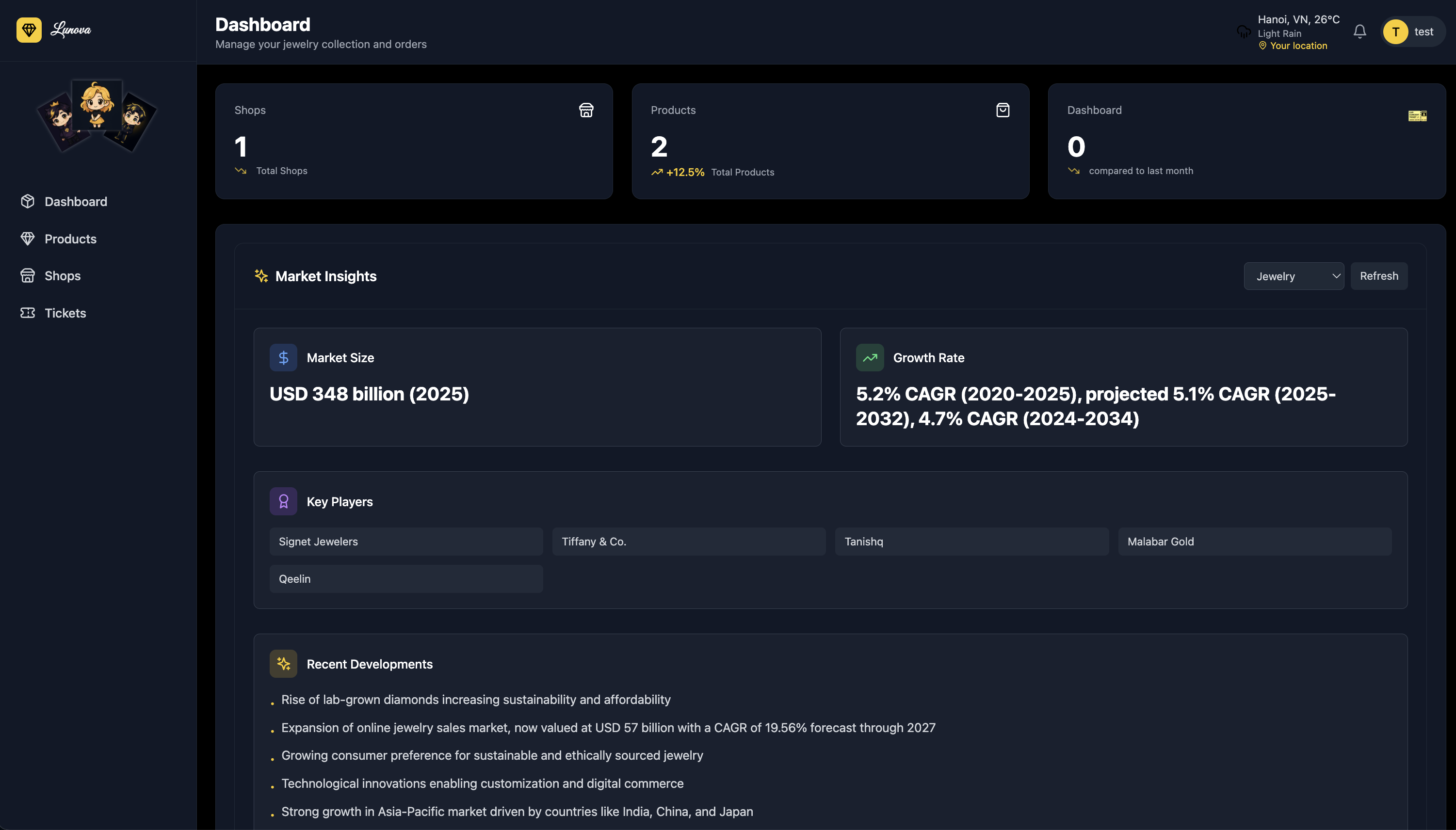 Lunova was born out of a vision to redefine the premium jewelry and souvenir shopping experience using the power of AI, serverless computing , and micro-frontend architecture. In 1 week, I set out to build a modern, scalable, and intelligent platform that not only looks great but also empowers both users and shop owners with smart tools, automation, and global reach.