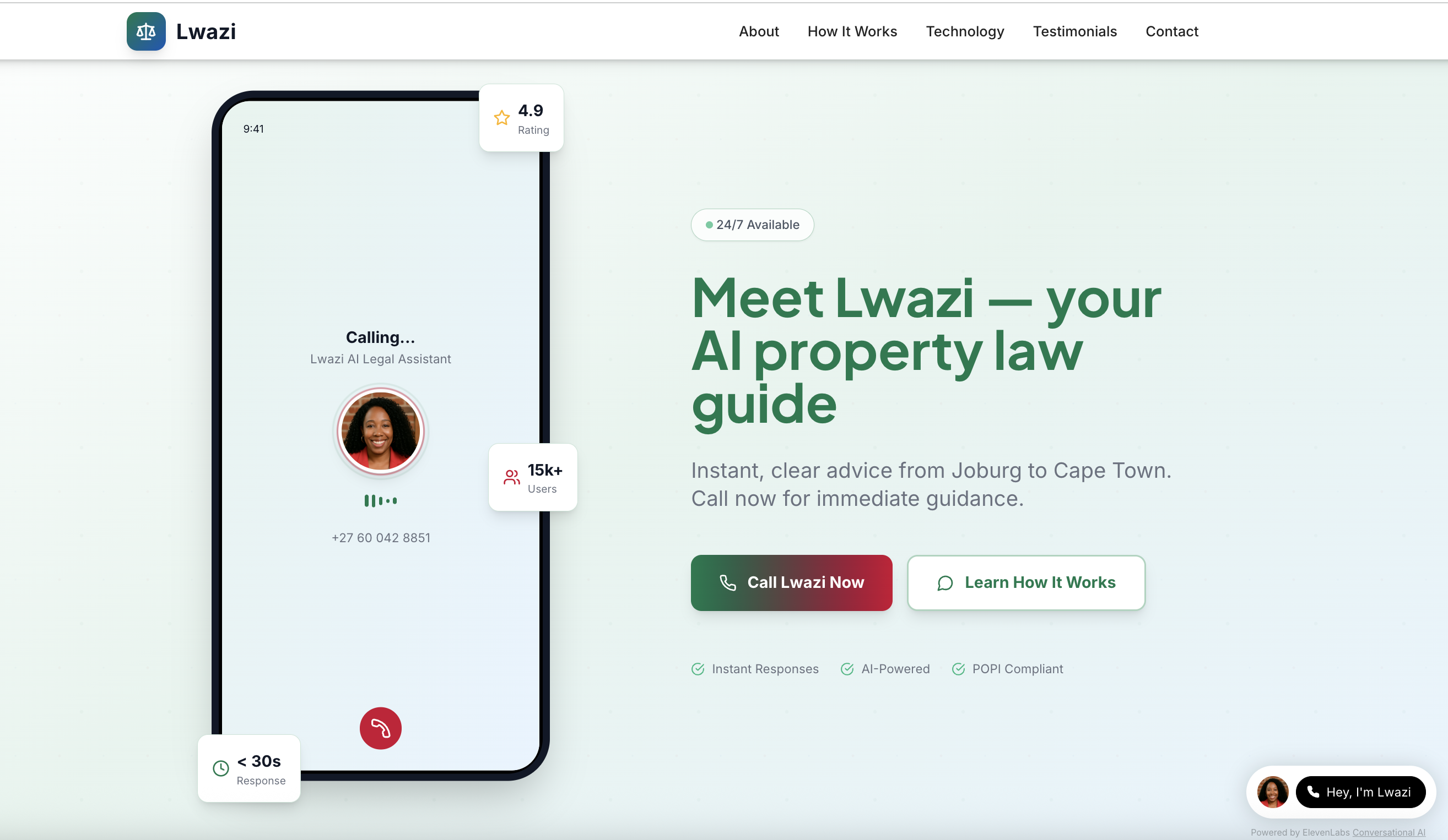 Lwazi means “knowledge” in Zulu. She embodies our vision for Law Firm 2.0—a firm that is client-centric, efficient, and unafraid of tech disruption. We wanted to build more than a chatbot; we wanted to create a voice-enabled, real-time assistant that simplifies legal interactions and delivers real value.