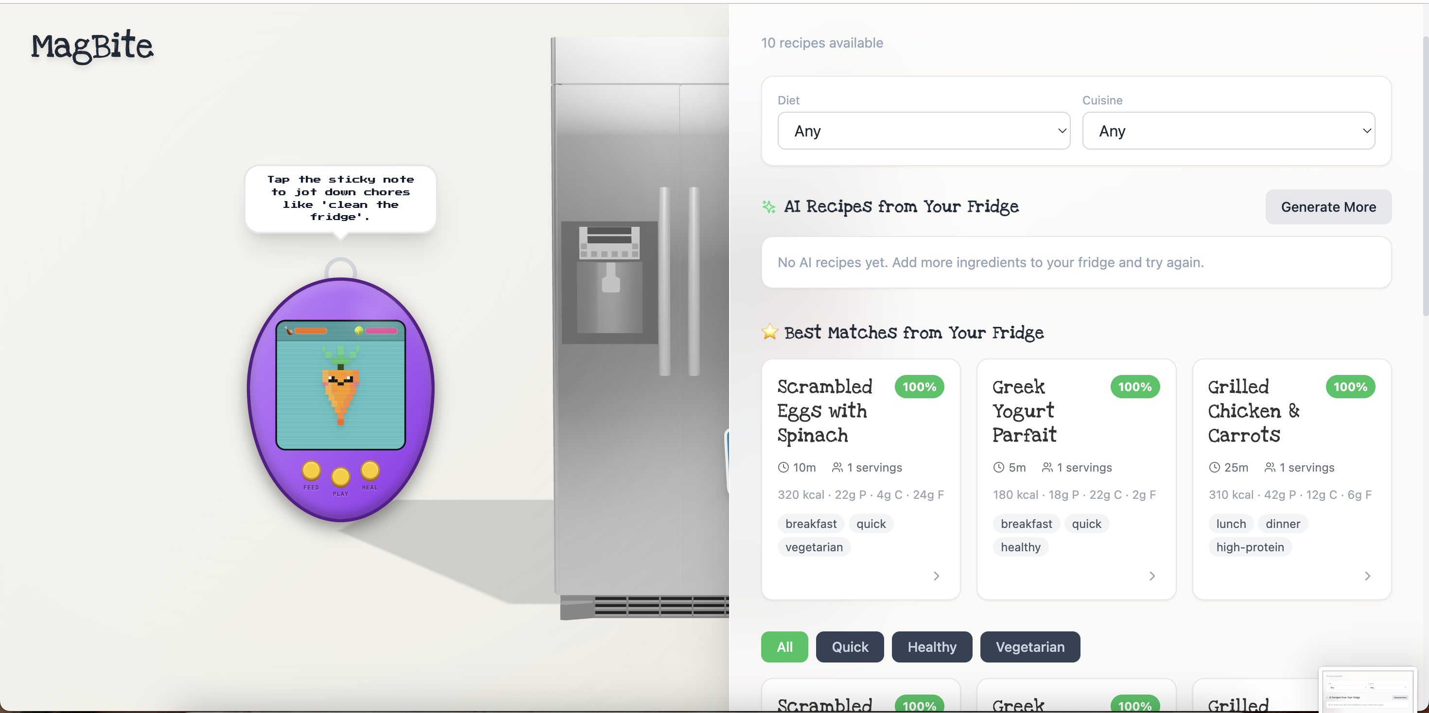 We learned one of the primary causes of poor diets is the lack of facilities and knowledge for recipes. We also learned how to integrate LLMs in our project, have fun, and make cool exciting stuff!