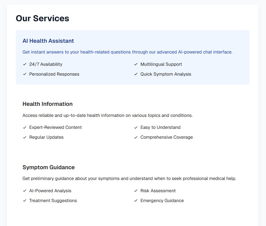 - AI-Powered Recommendations: Personalized healthcare service suggestions