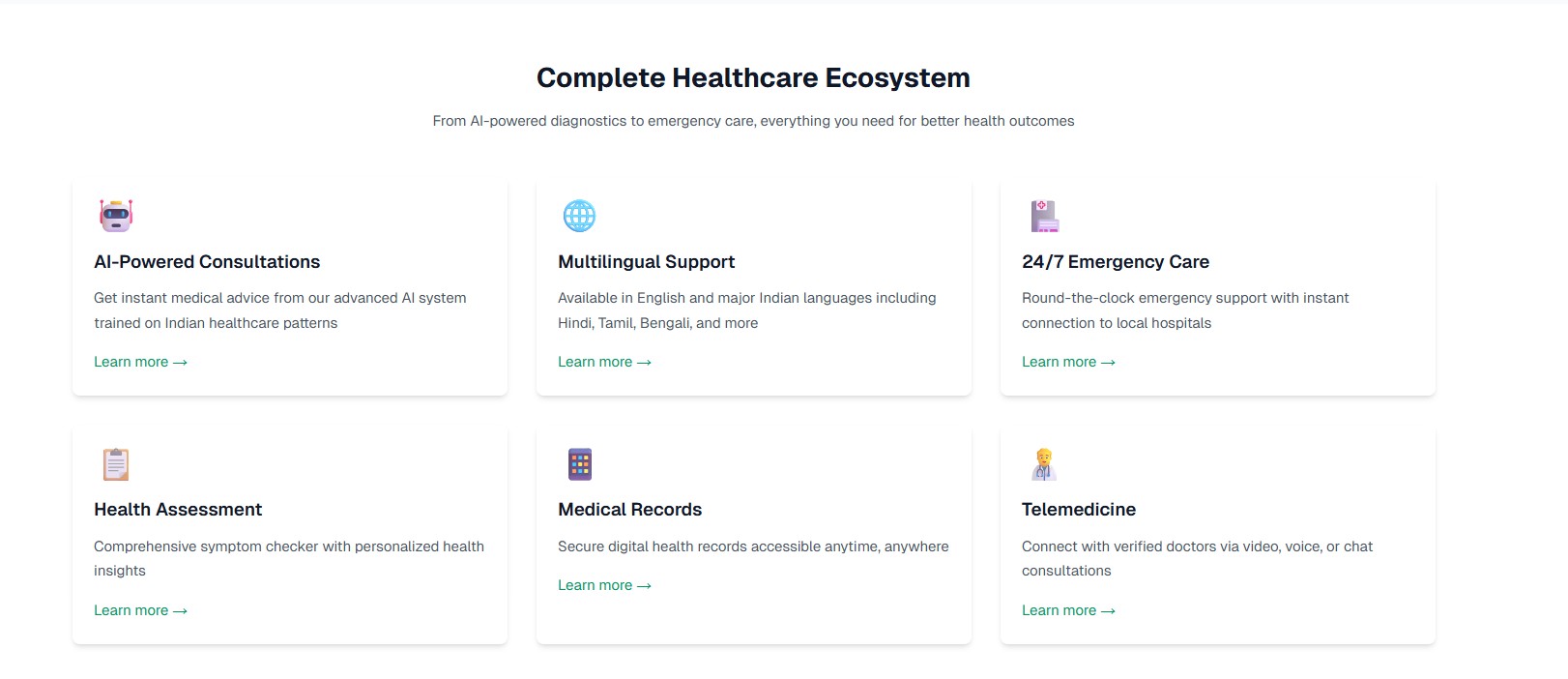 - Multilingual Support: Healthcare assistance in English and major Indian languages
