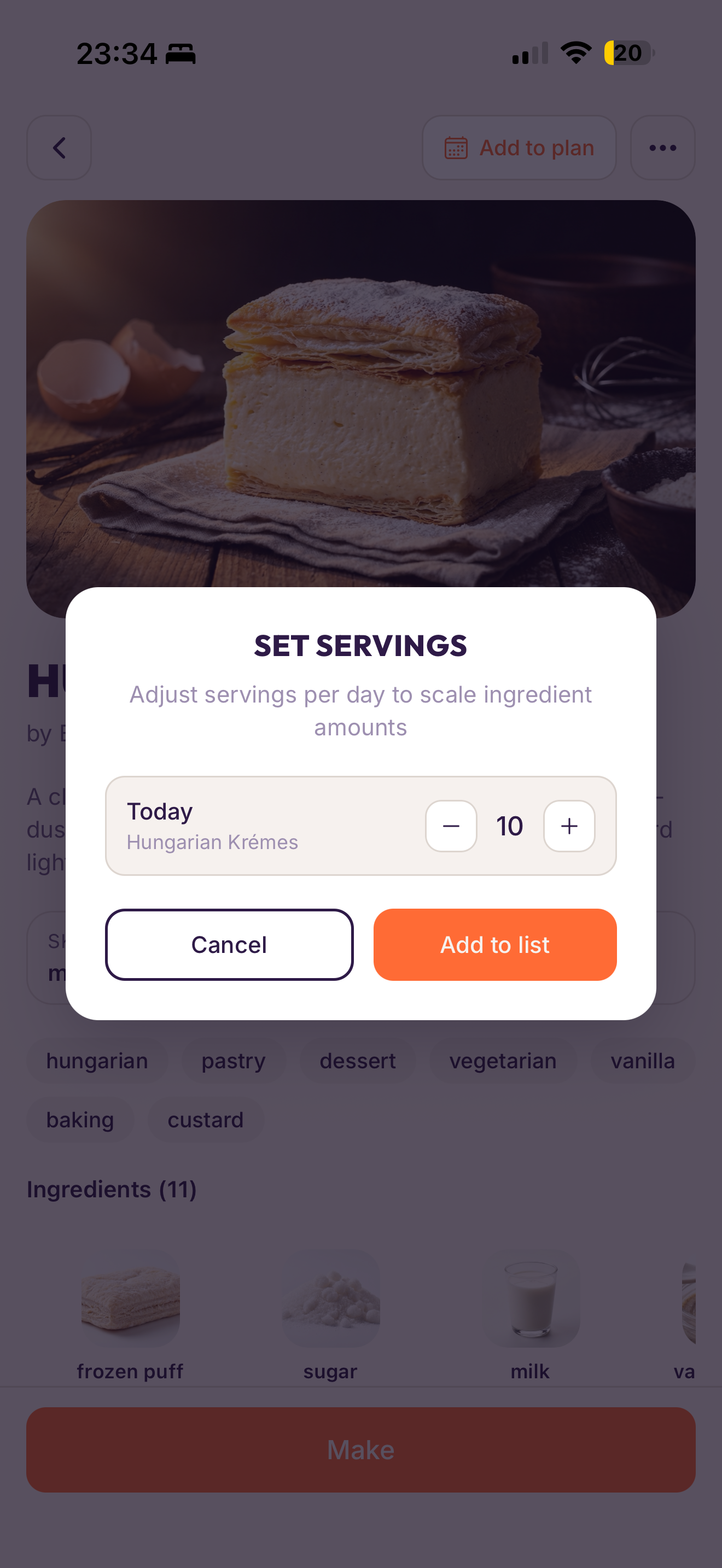 Setting number of servings during add to grocery list operation