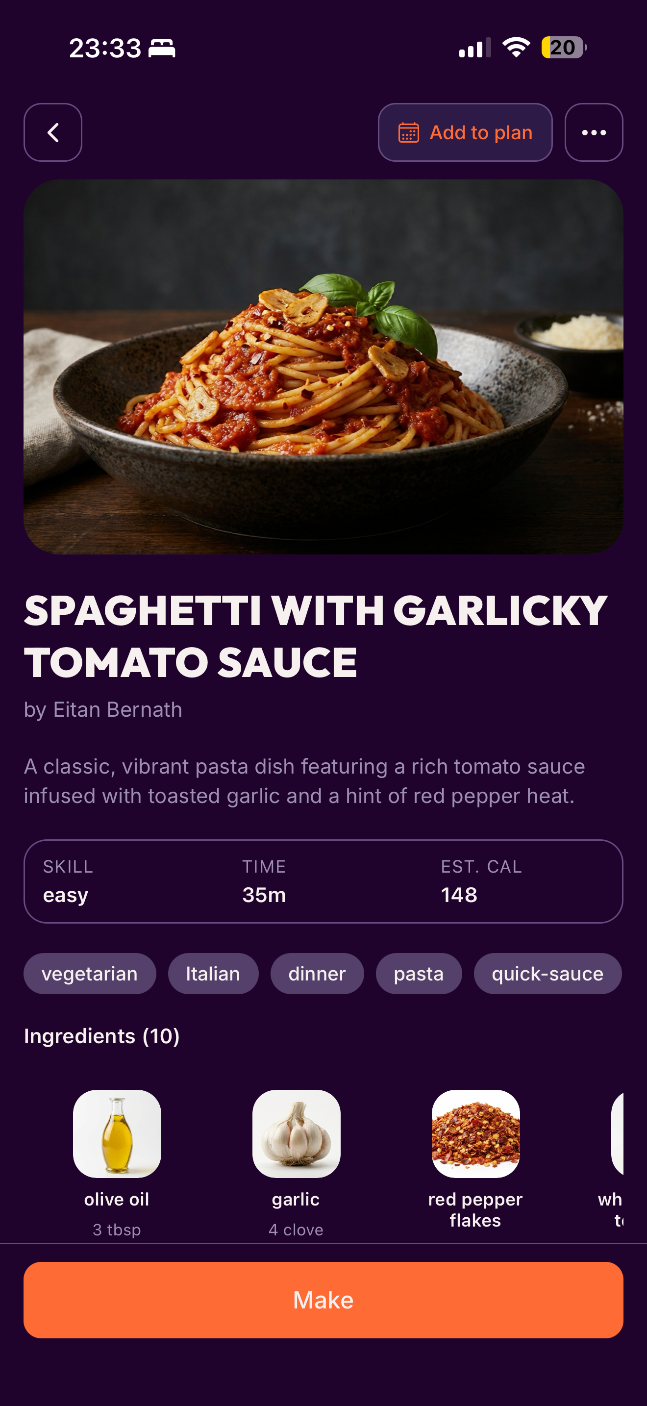Make This Tonight helps you add recipes, plan your meals and create grocery list. It makes cooking easier and more fun.
