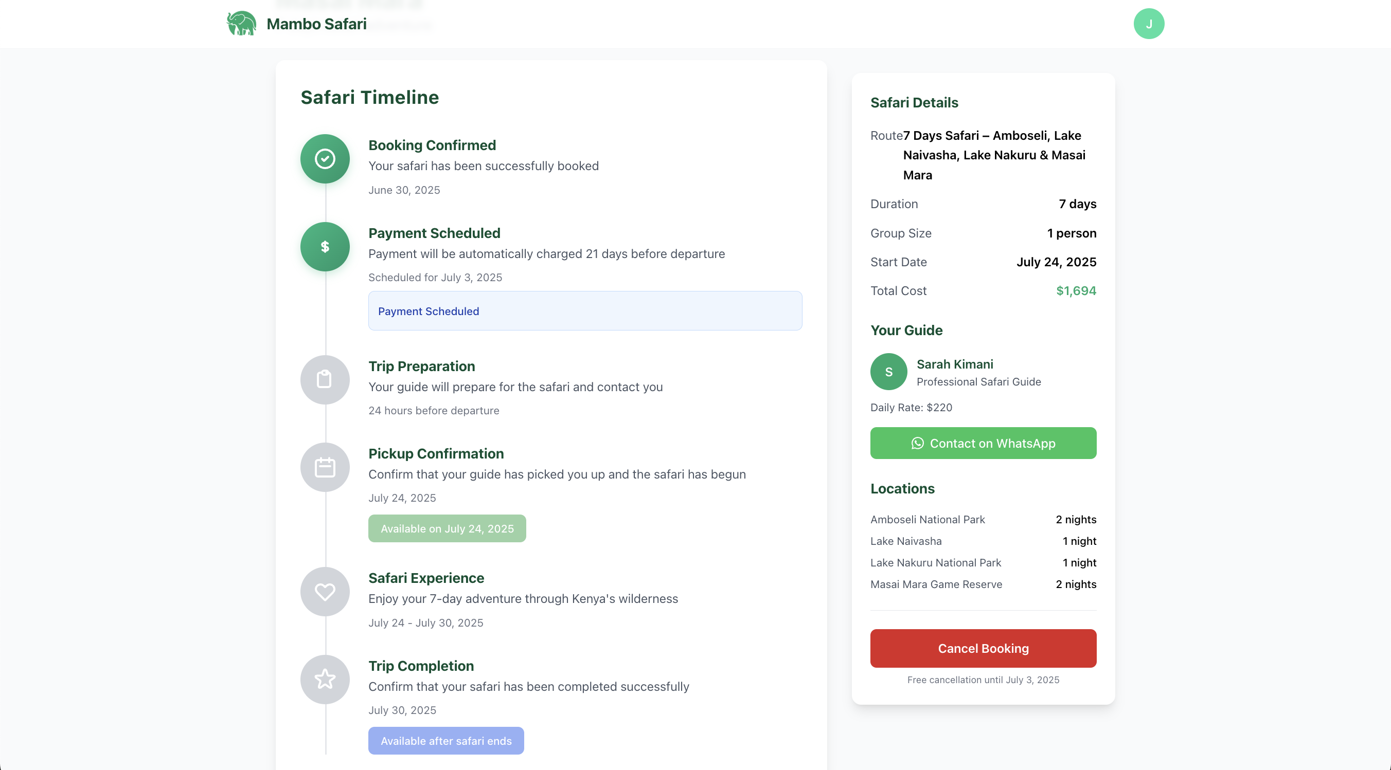 - Direct communication with guides via WhatsApp