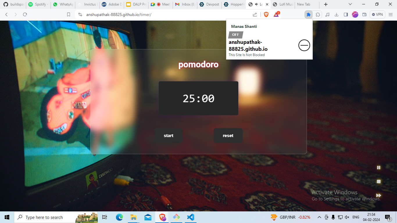 We are proud to have successfully developed the "Manas Shanti" extension, creating a tool that can genuinely assist individuals in enhancing their focus and productivity. The combination of the Pomodoro Technique with features like distraction-blocking has resulted in a holistic solution for users seeking a more mindful and concentrated work environment.