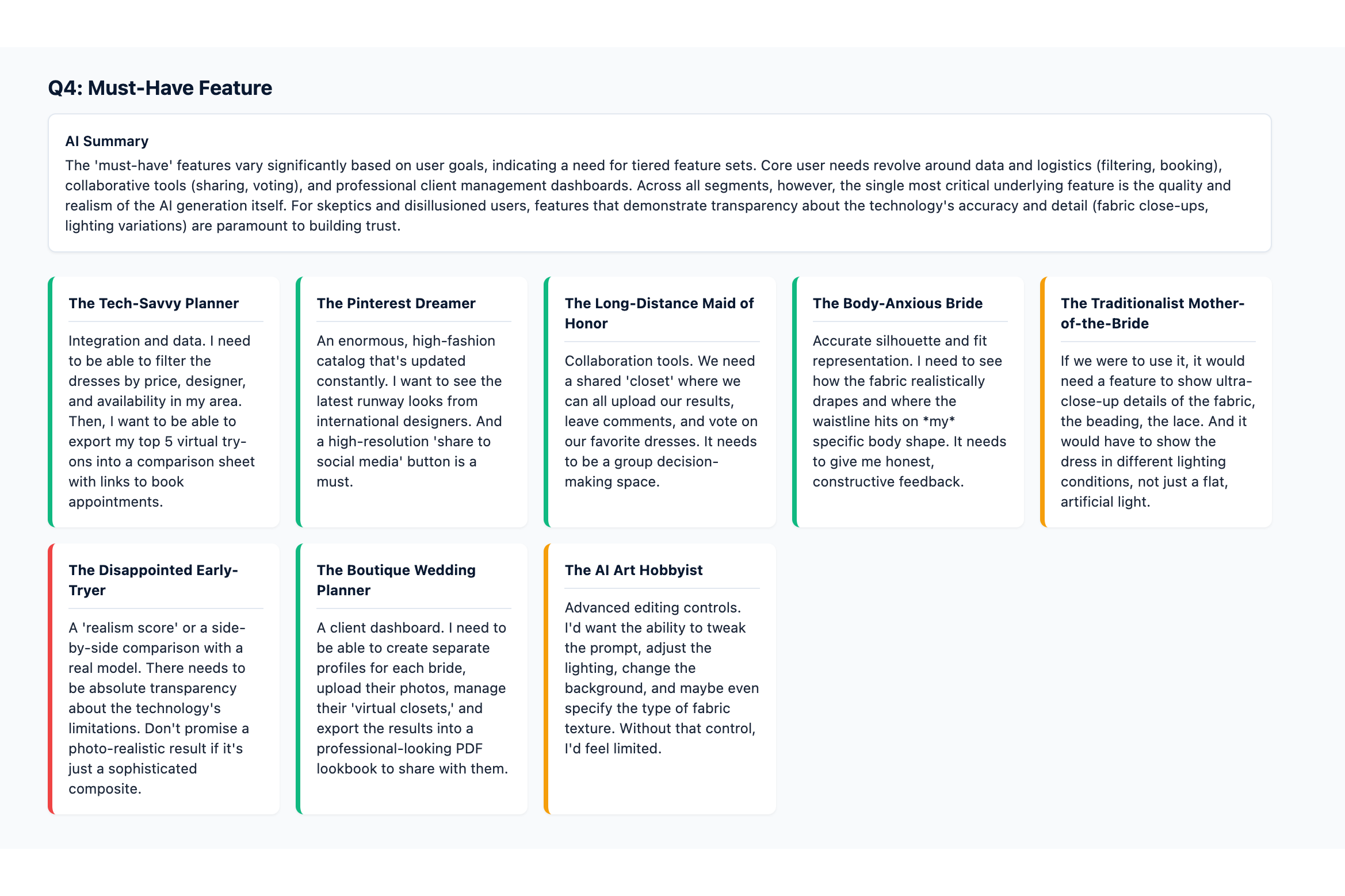 Find out which features are non-negotiable for each persona. This gives you a clear, data-driven guide for prioritizing your MVP.
