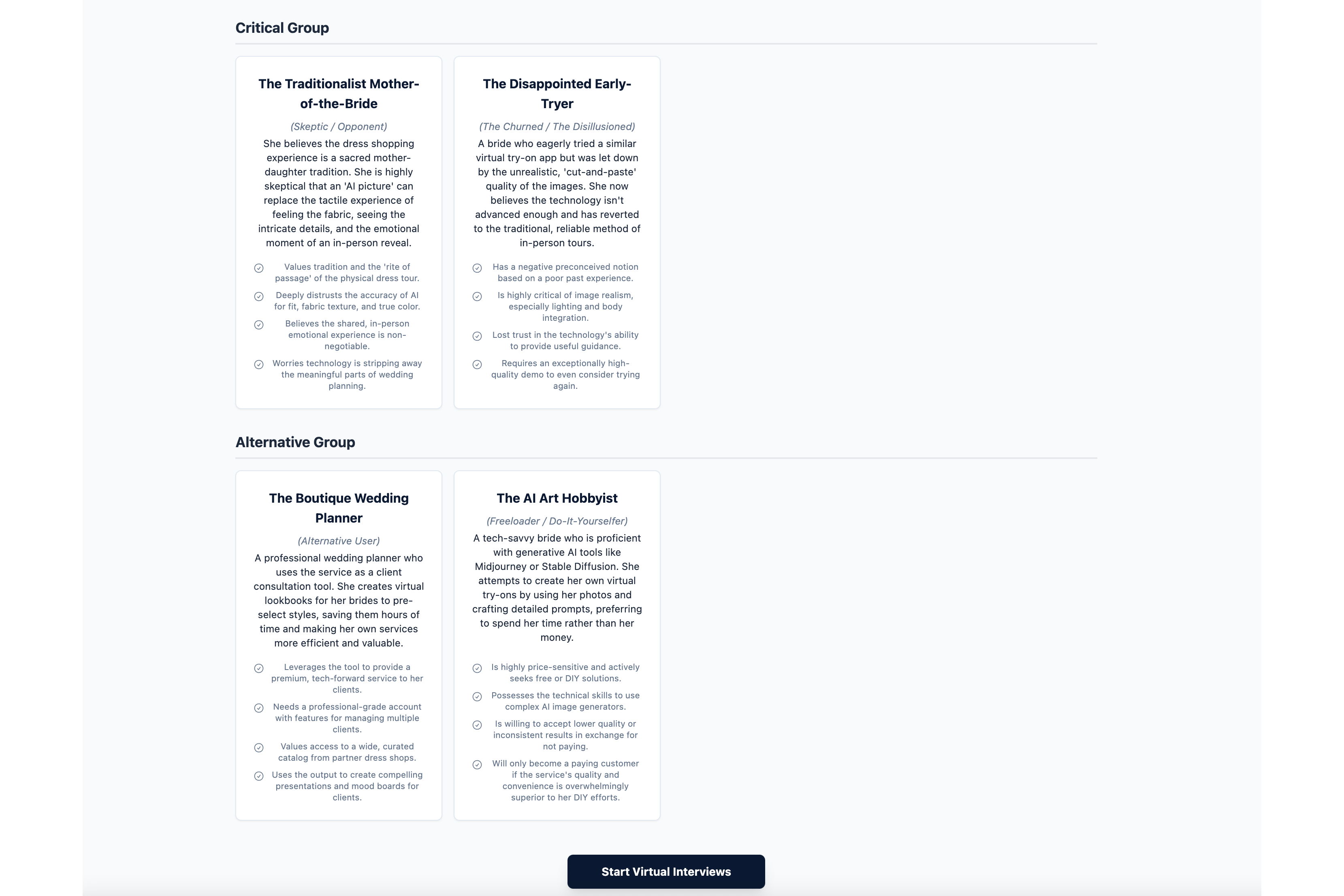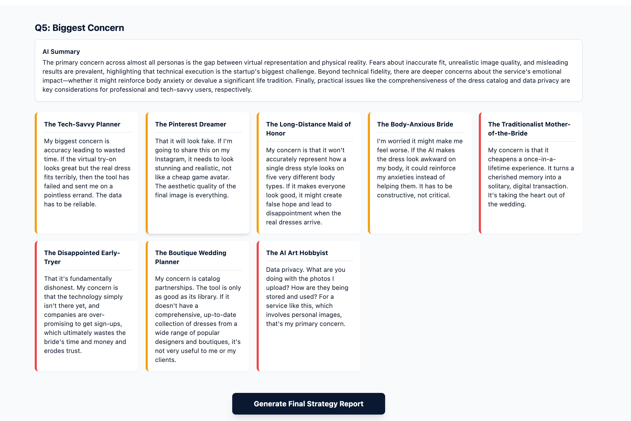 Our biggest initial challenge was persona homogeneity. The AI, anchored by the user's initial idea, tended to generate personas that were all minor variations of each other. To solve this, we engineered the "Axis of Variation" framework directly into the prompt, forcing the AI to explore radically different viewpoints, including outright opponents.