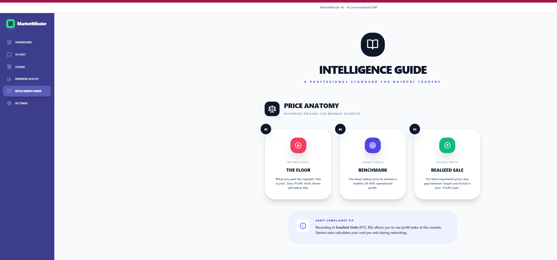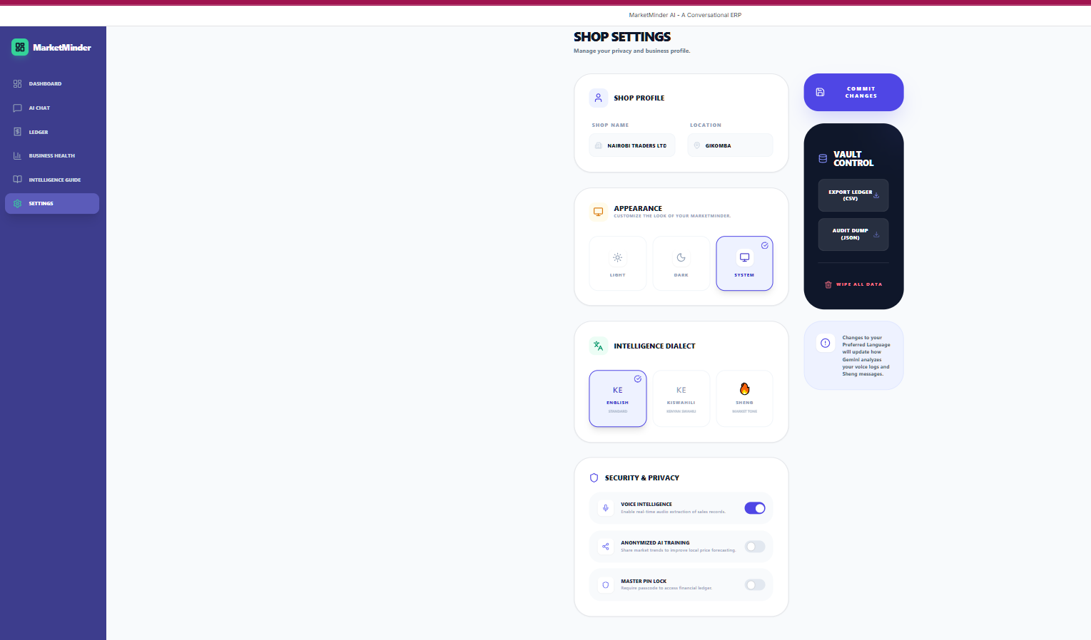 MarketMinder AI is a conversational ERP for Kenyan traders, leveraging Gemini 3 to parse voice, text, and receipts for real-time stock tracking, cashflow forecasts, and credit scoring. It generates audit-ready reports to reduce predatory lending and enable formal loans like KCB-M-Pesa.