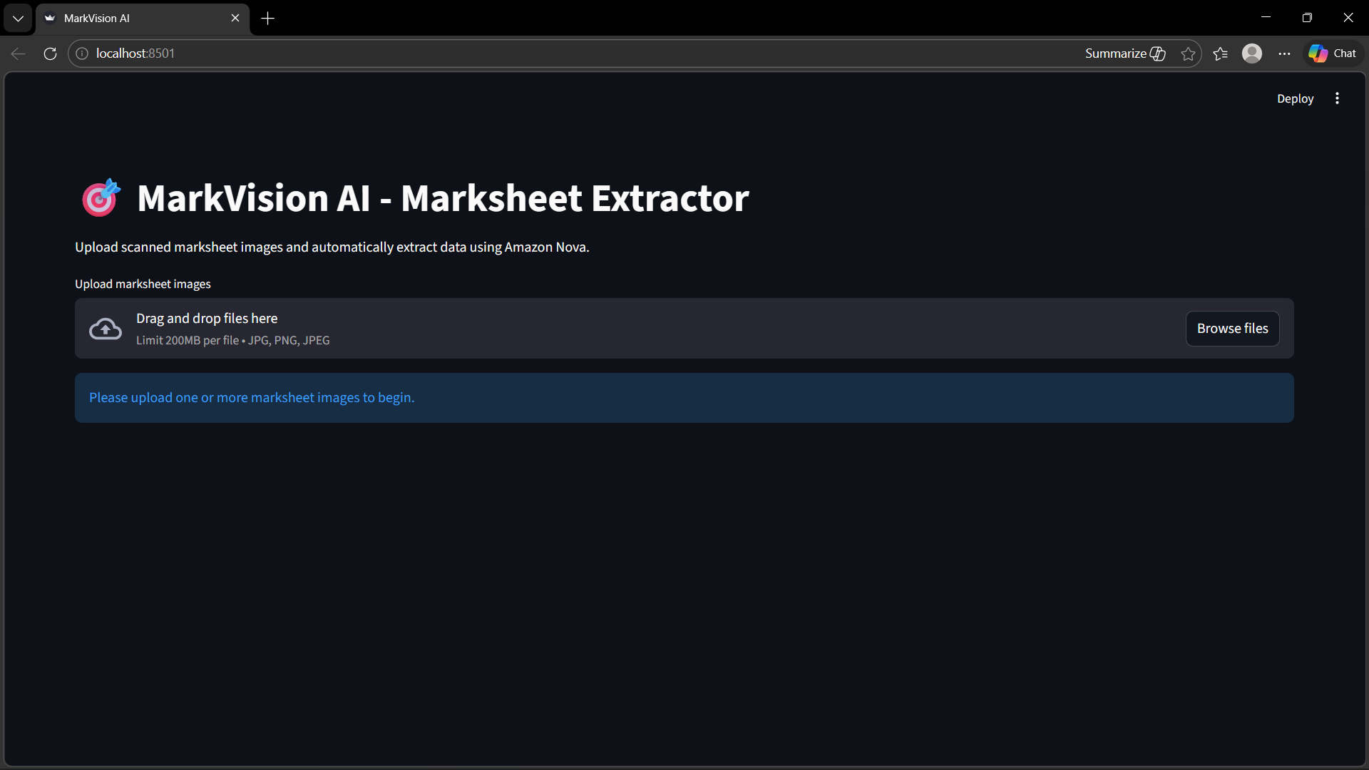Educational institutions are frequently dealing with hundreds of marksheets on a semesterly basis. Administrators typically spend a great deal of time entering student names, subjects and marks in a spreadsheet by hand. This process is slow, repetitive and subject to human error. We were inspired to solve this problem by generative AI. By using Amazon Nova 2 Lite, we wanted to create a system that would be able to automatically comprehend marksheet images and translate them into structured digital records. The goal was to reduce the manual effort and demonstrate the power of multimodal AI in making the real world of administrative workflows easy.