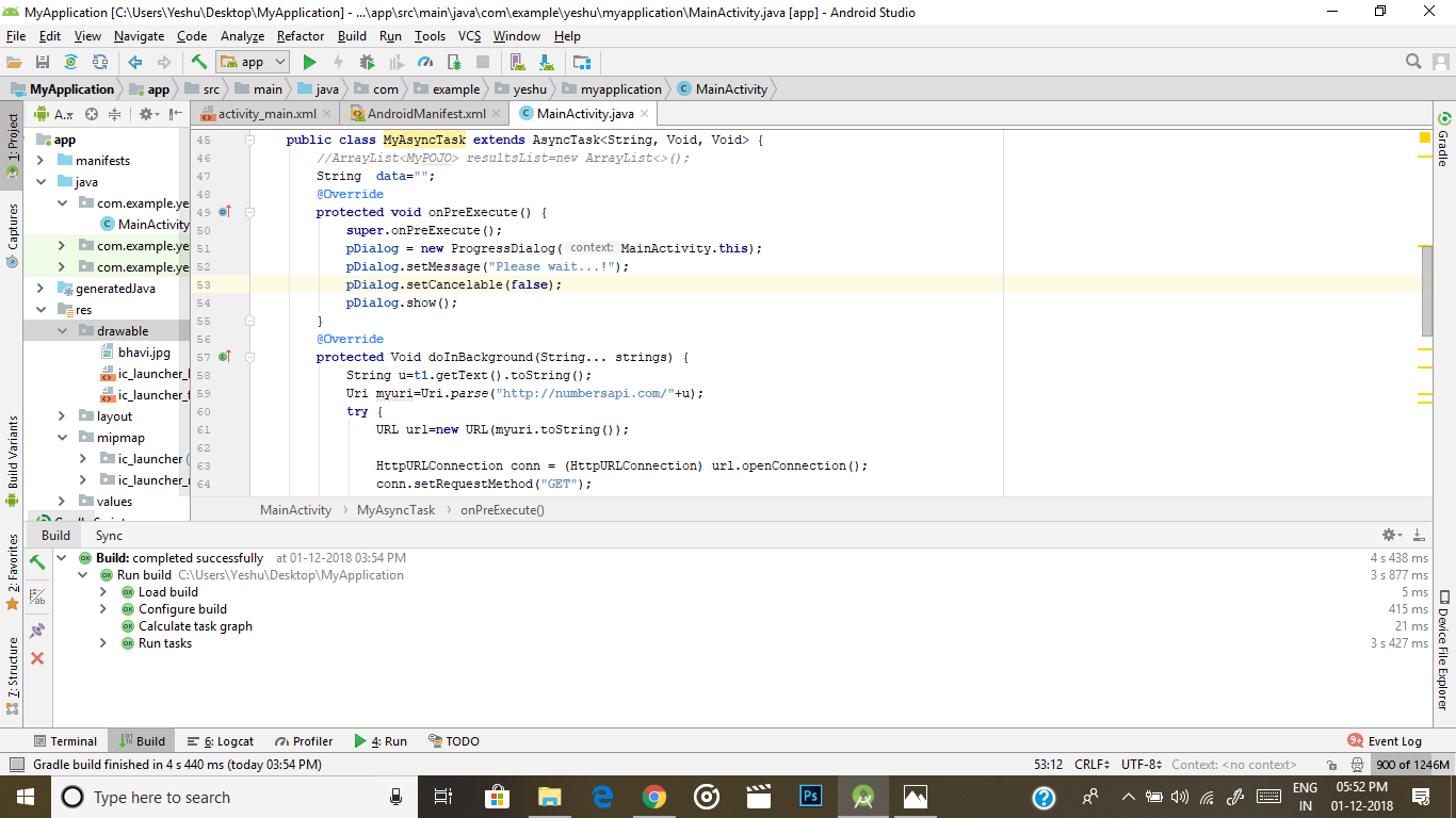 We built it using the numbersapi.com (REST API) and also by using android programming going through a series of developments in the app