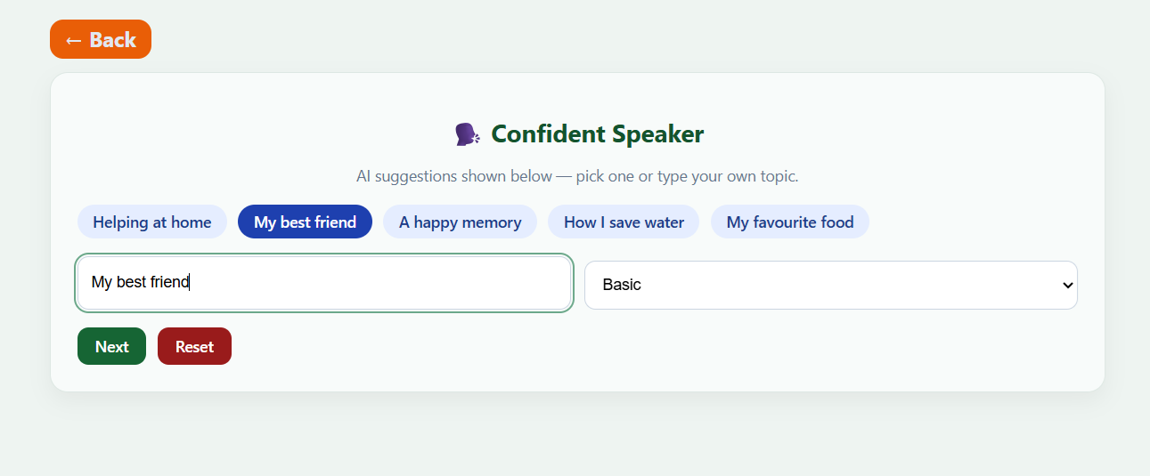Confidence-First Speaking Practice: Gentle guidance helps children express ideas calmly, without panic or fear.