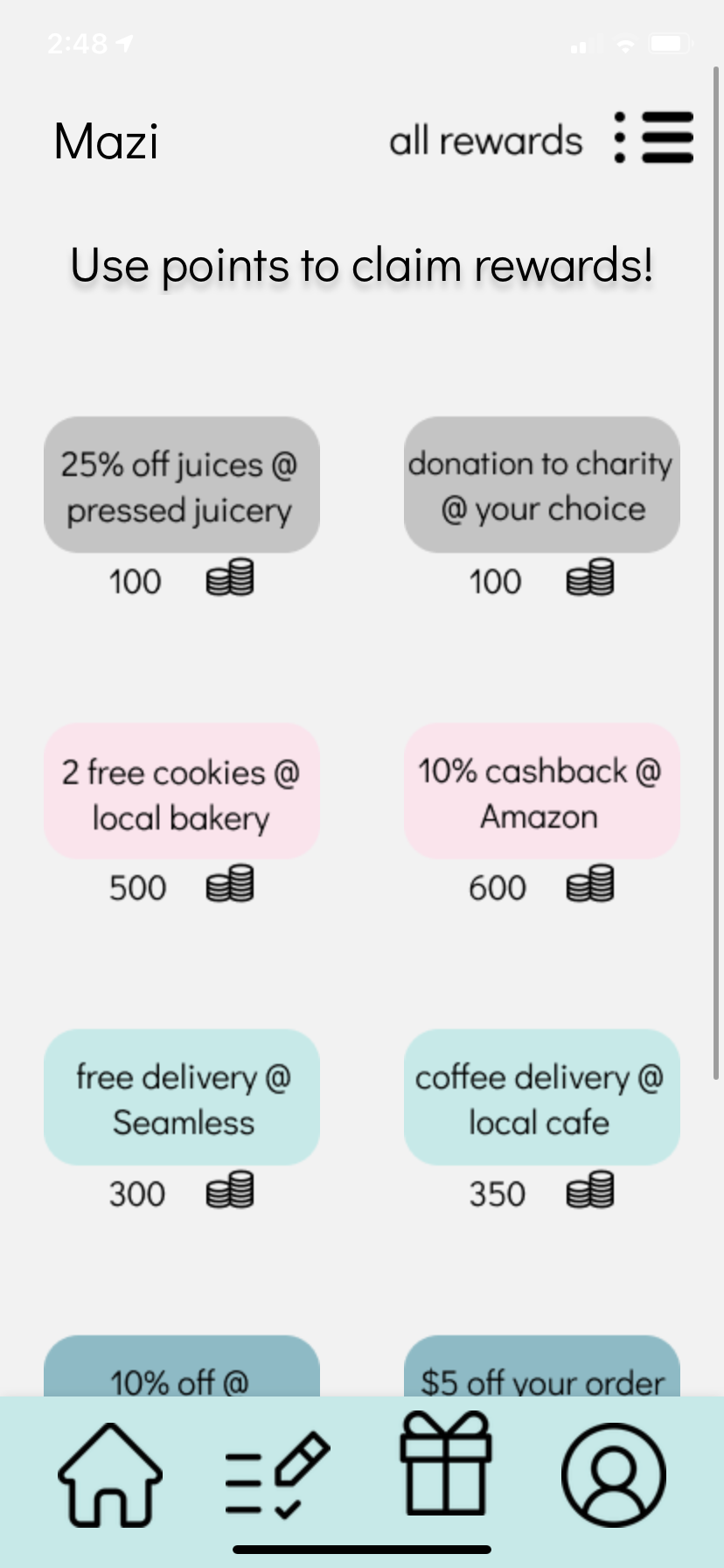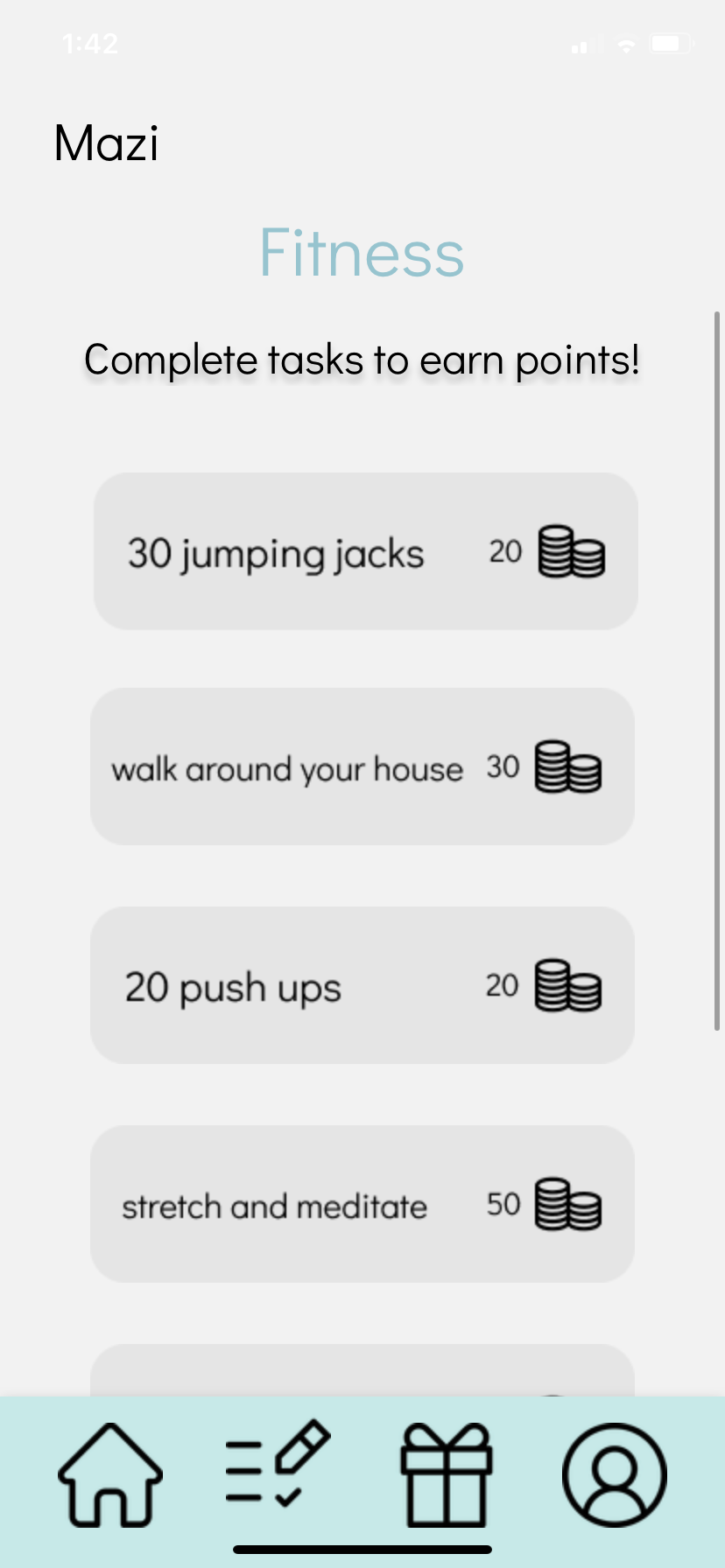 Introducing Mazi, a mobile app to gamify the quarantine! Earn rewards by performing tasks at home. Self-quarantine with an incentive!