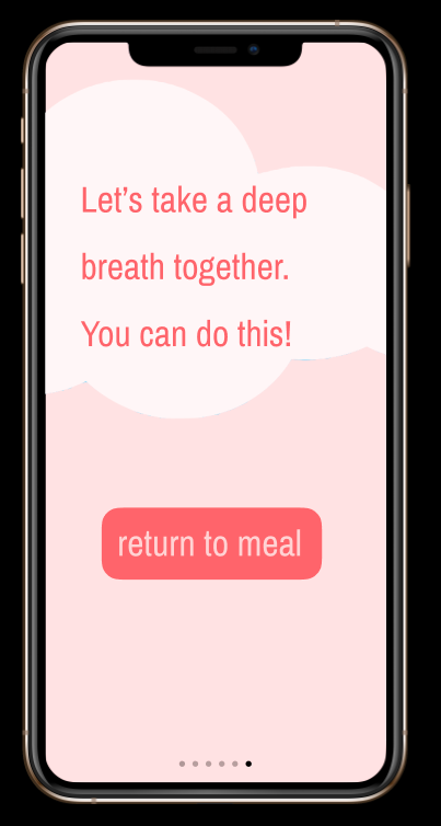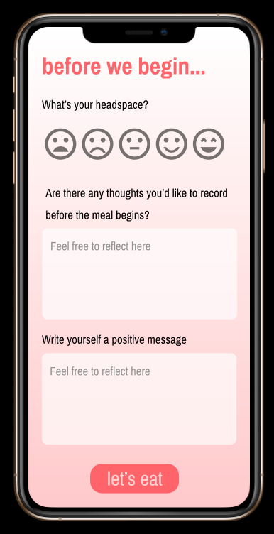 Cognitive behavioural therapy (CBT) is a technique used to help individuals with EDs. Our solution is to provide a real-time “meal buddy” system that employs CBT to help remedy self-defeating thought patterns that contribute to eating disorders. This buddy helps you think through any intrusive thoughts as you eat. This app is easy to use for all and is unbiased because unlike other apps, prompts are open ended. This helps you address the thoughts in the moment.