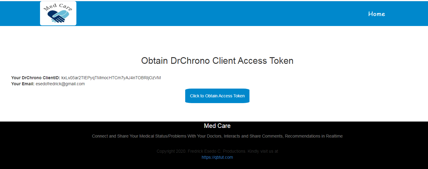 After Doctors signing in via Dr. Chrono API Authentication calls, an Access Token is generated which is updated in our database with the authenticating Doctors Email ID.