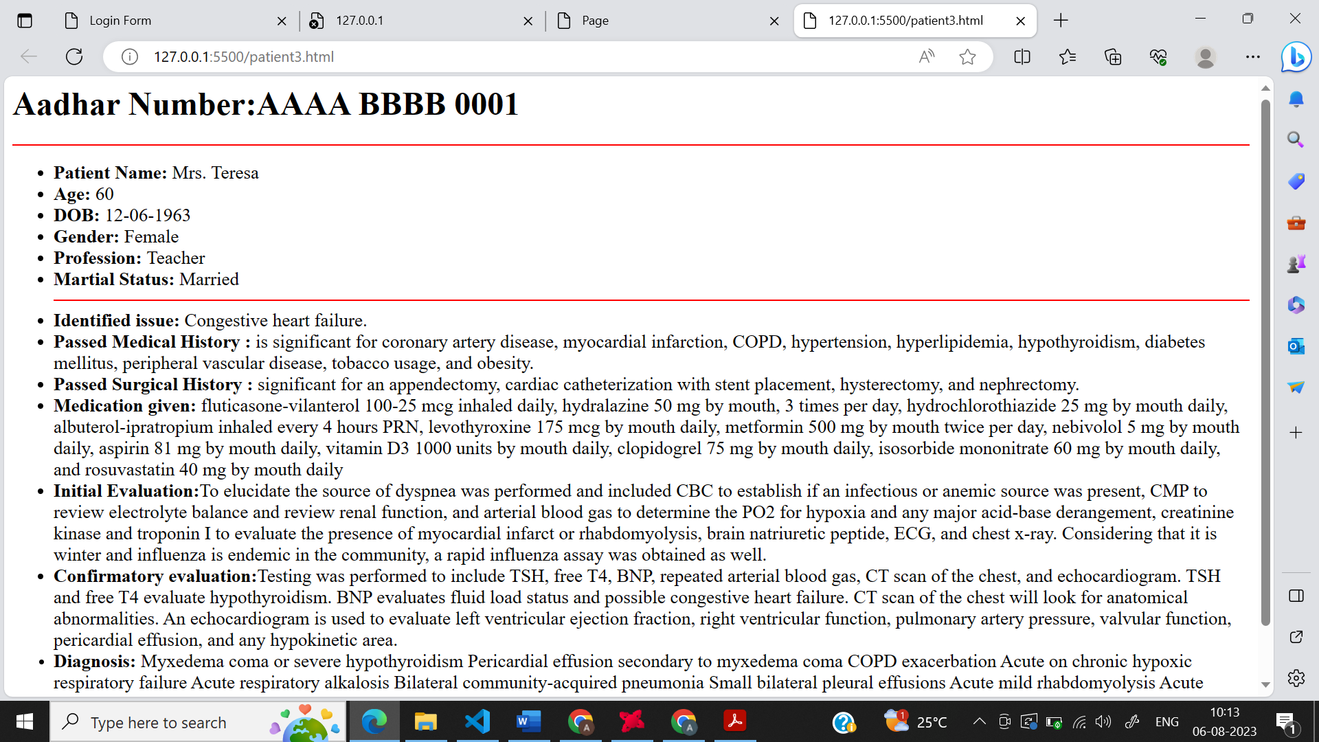 - FOR MEDICAL STUDENTS FOR CASE STUDY The present medical students who are going to become the future doctors of our county will need real life situation to get to know more about how things actually happen. This can help the medical students get to learn many different cases. They will have to register into the app first and then they will have an access to the different case studies. 3.DATA ACCESSING BY DIFFERENT DOCTORS OF DIFFERENT HOSPITALS Now if a patient is currently in Delhi, and has taken his medical treatment from different hospitals of Delhi. He later shifts to Mumbai due to his work. Now he has started taking medication from a new hospital. Now the doctor of this hospital can actually access his medical history through his Aadhar card number.