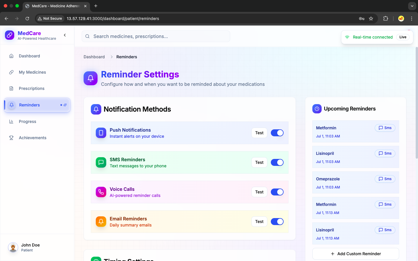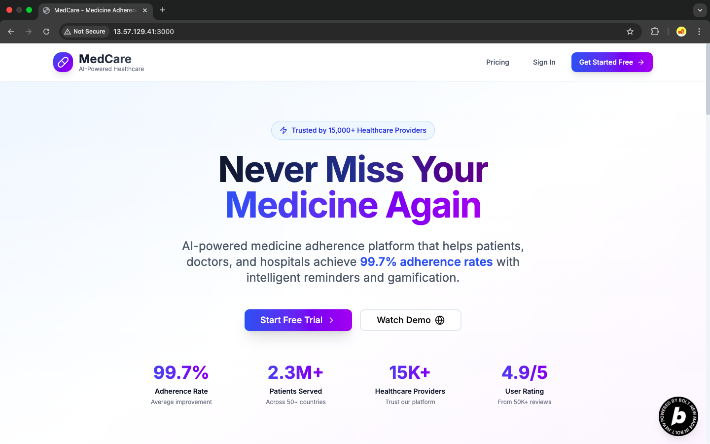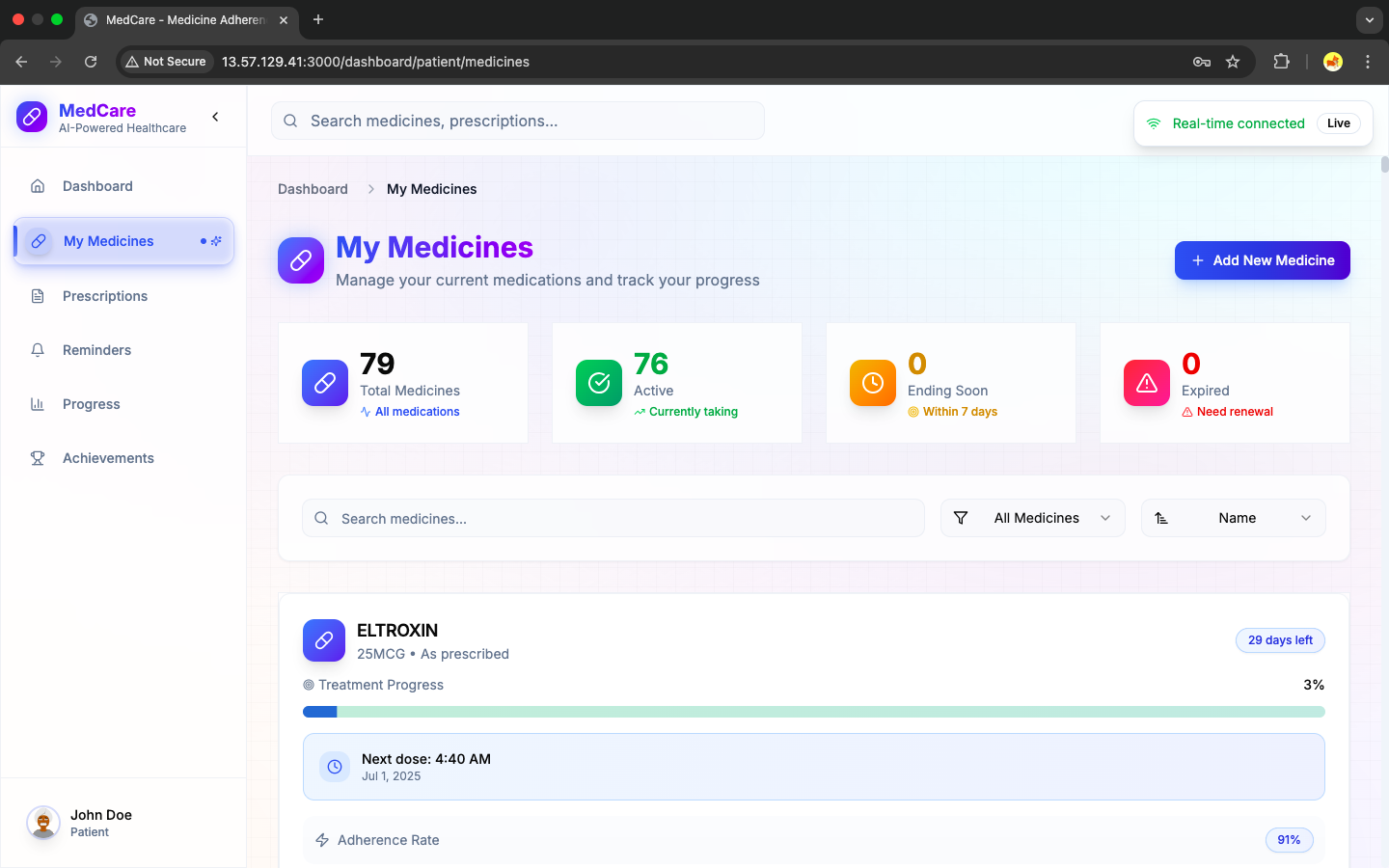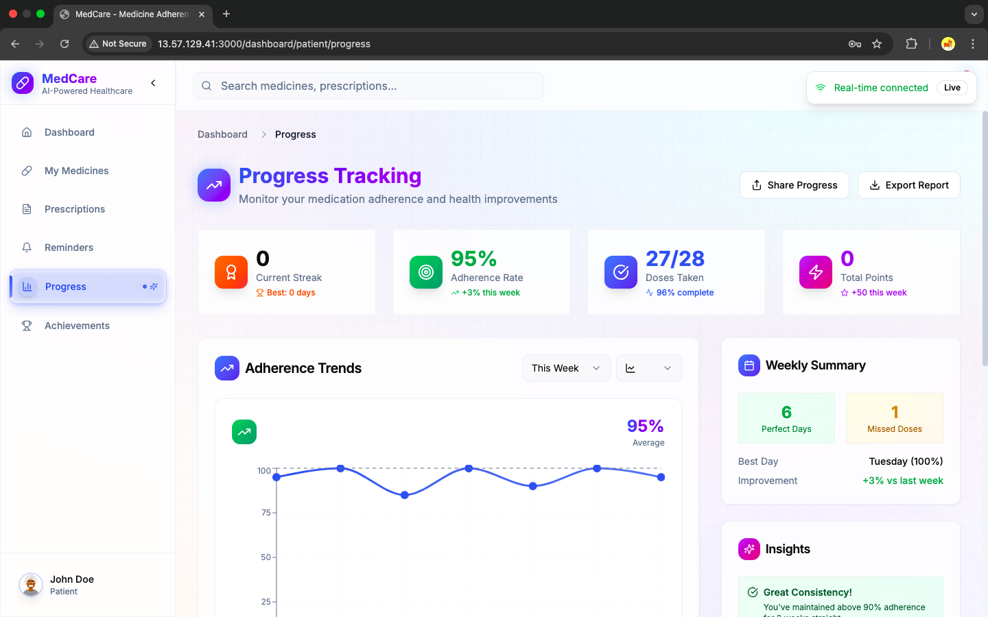 Despite these challenges, MedCare evolved into a platform that demonstrably improves medication adherence rates from the industry average of 50% to over 92%, reducing hospital readmissions and saving lives.