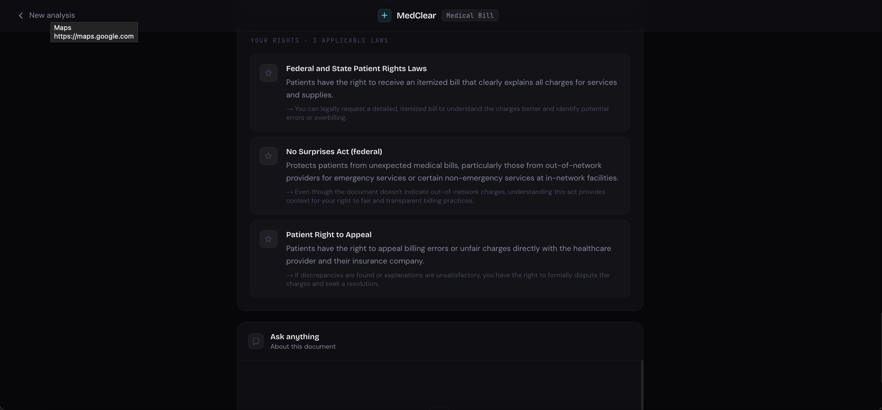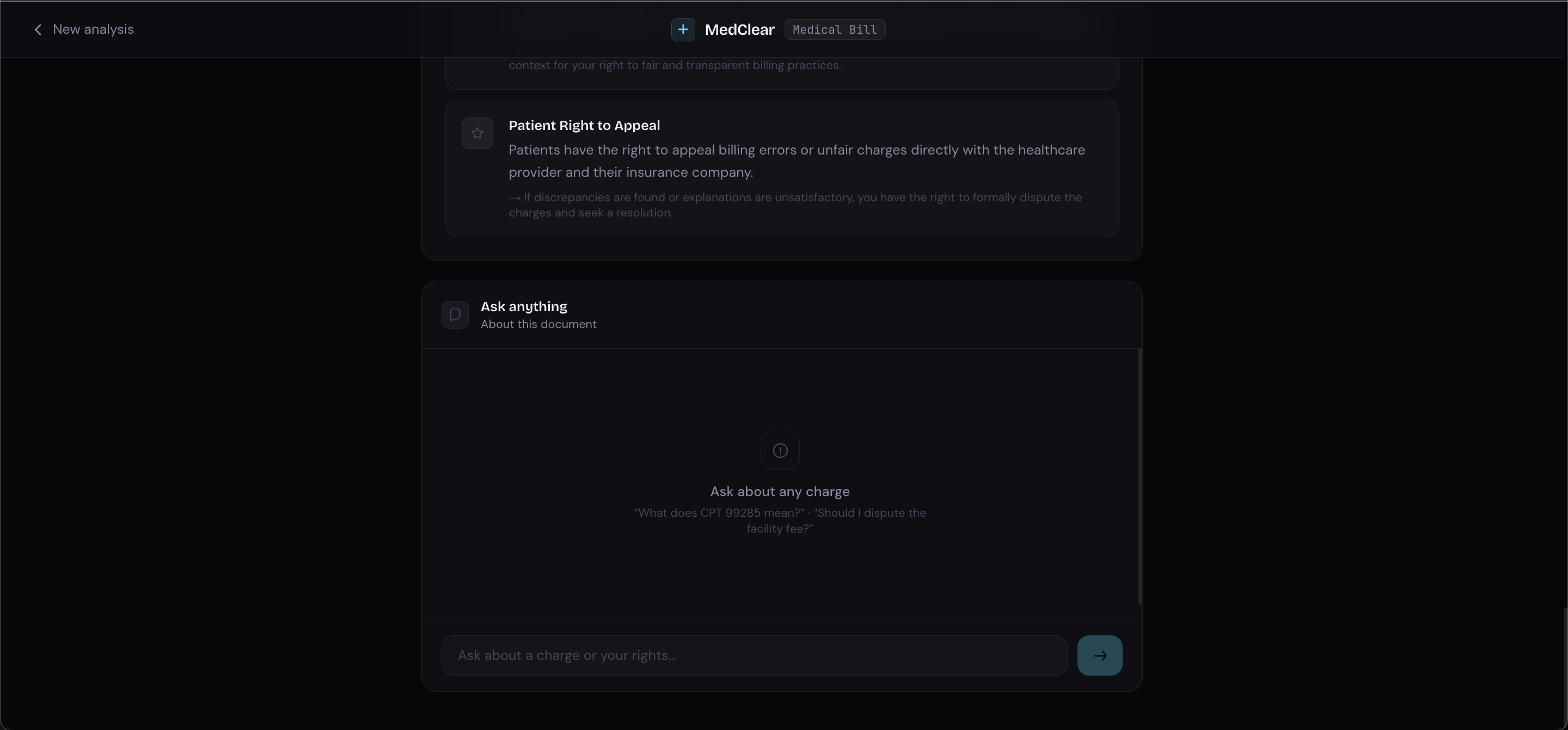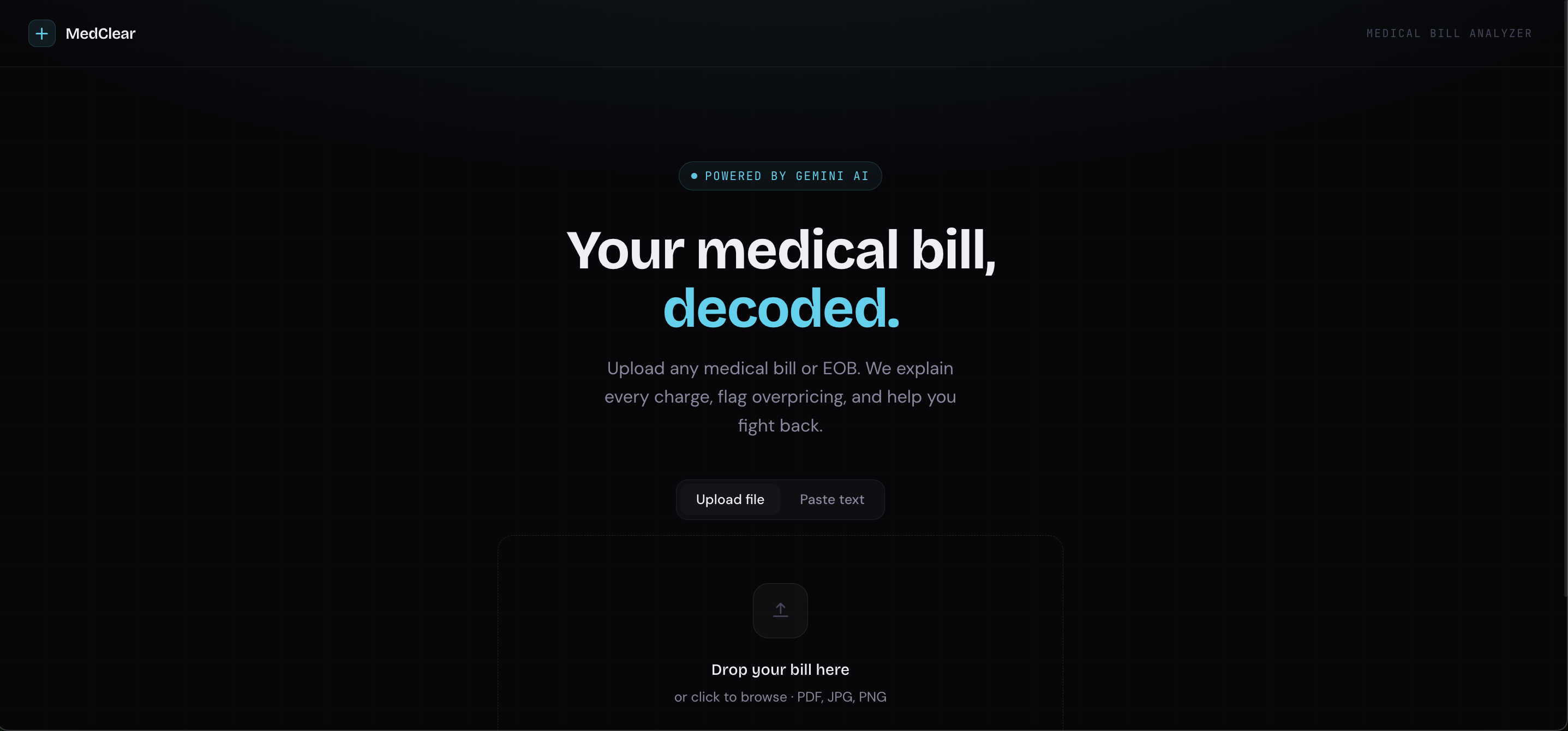 MedClear fixes that. Upload any medical bill or EOB and within seconds you get