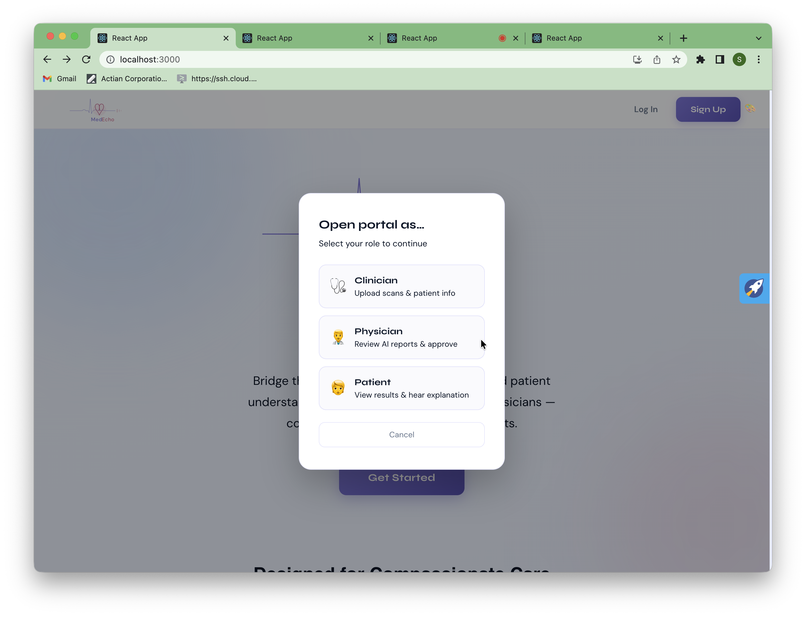 MedEcho is a three-portal system that takes a chest X-ray from upload to plain-language explanation in the patient's own language, delivered face-to-face by an AI avatar.