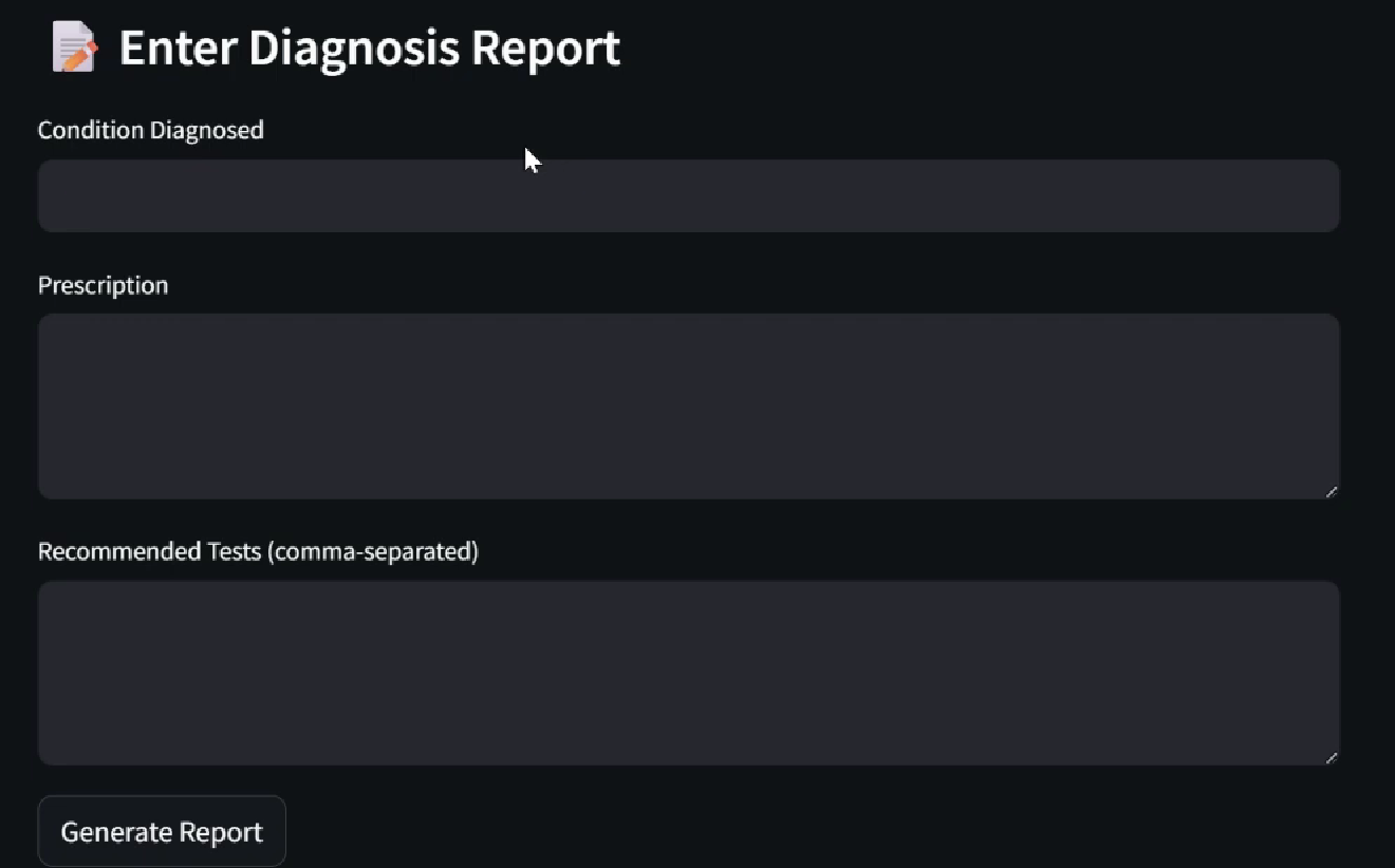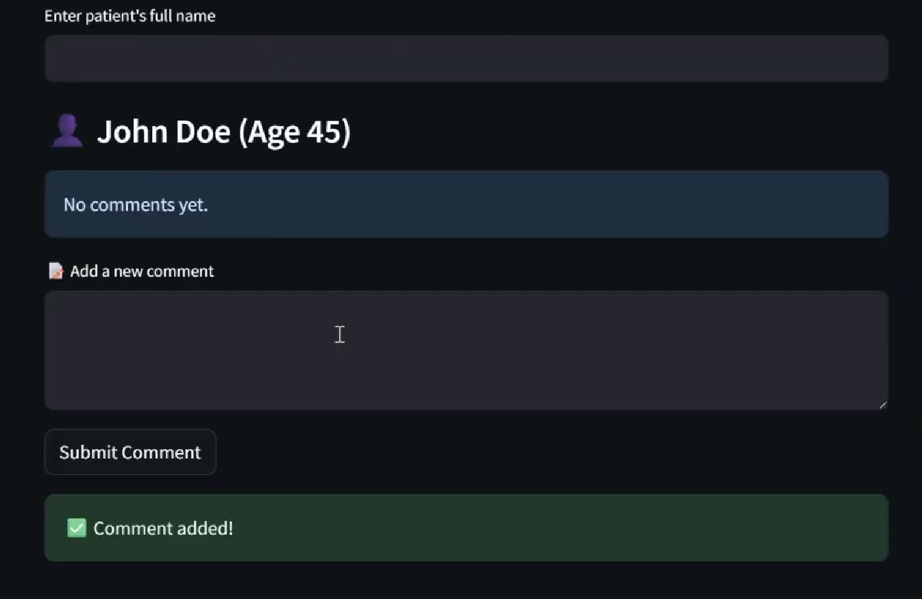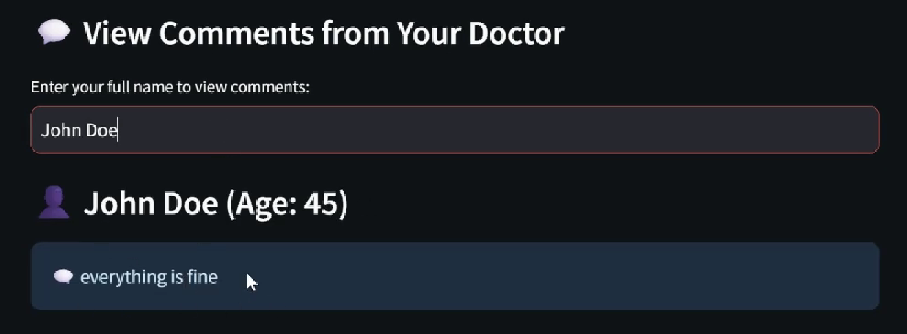 - Designed a clean Streamlit UI with real-time updates, doctor and patient dashboards