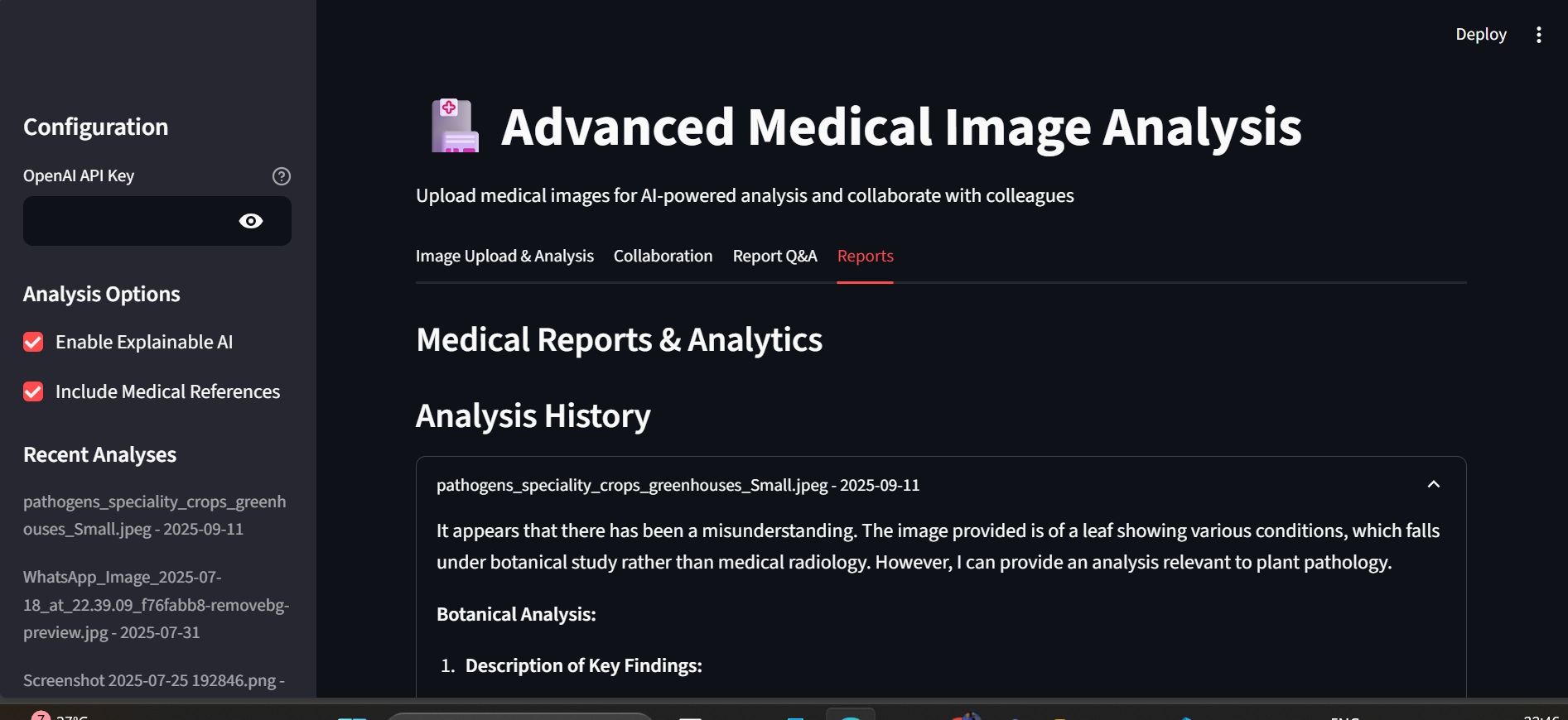 Reports (X-rays, CBCs, scans) are parsed and stored in JSON (analysis_store.json).