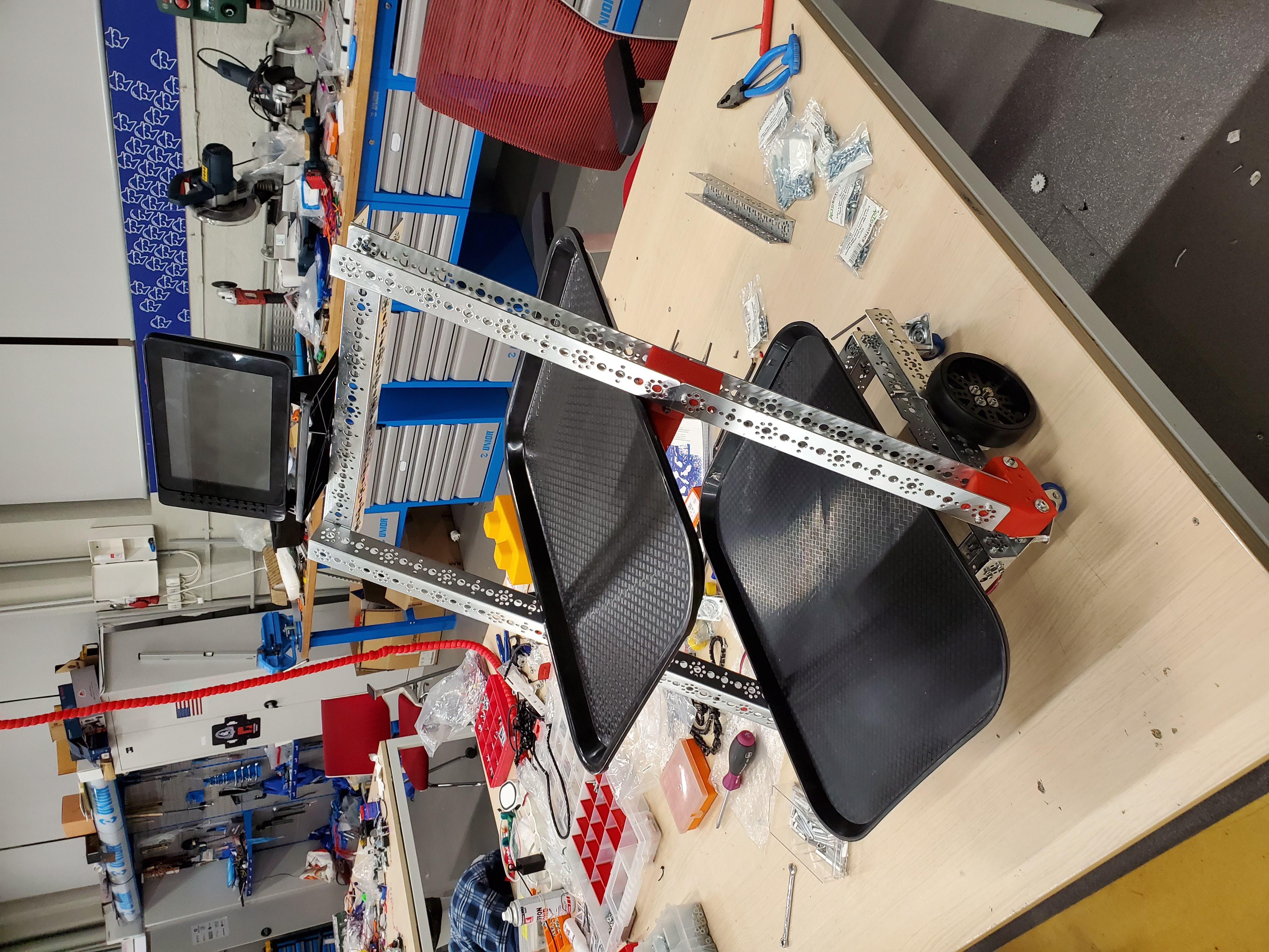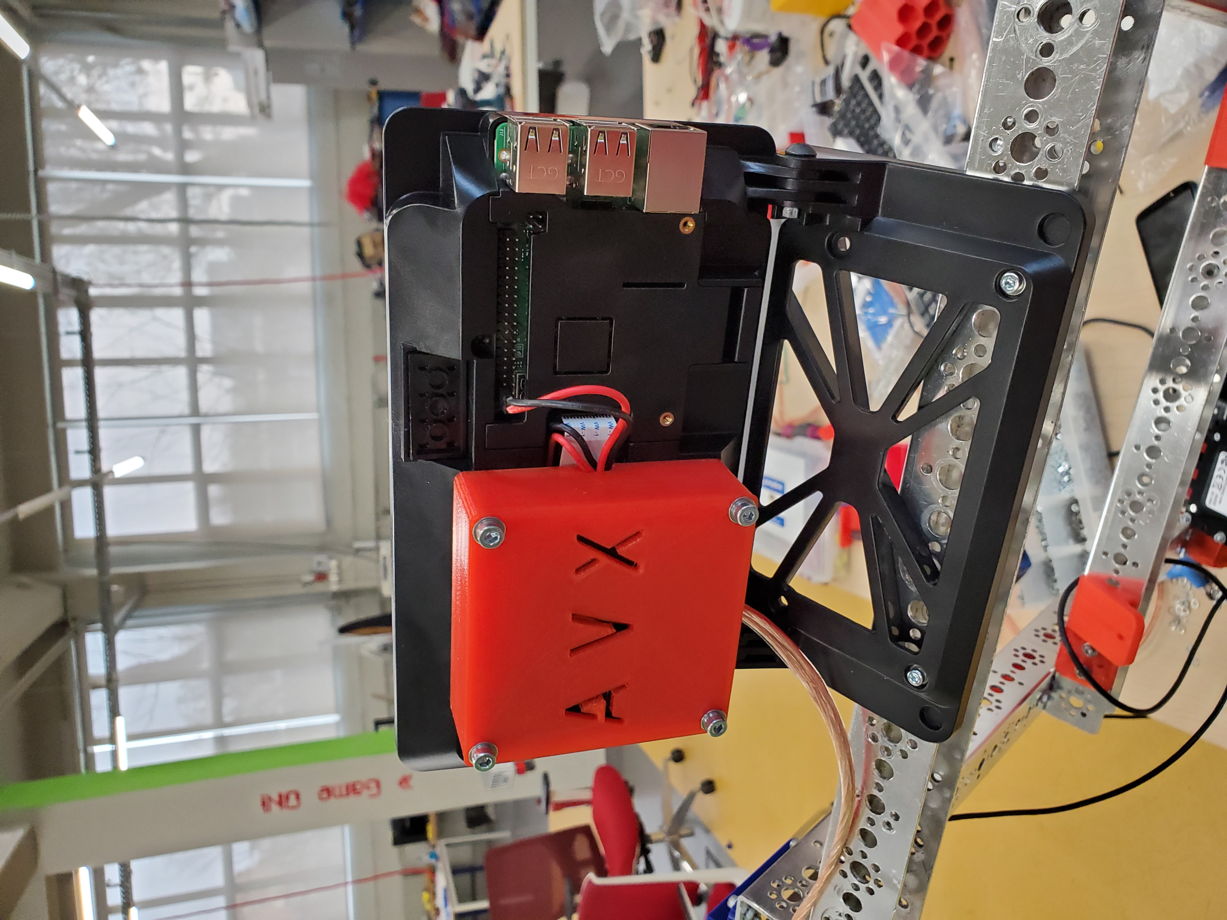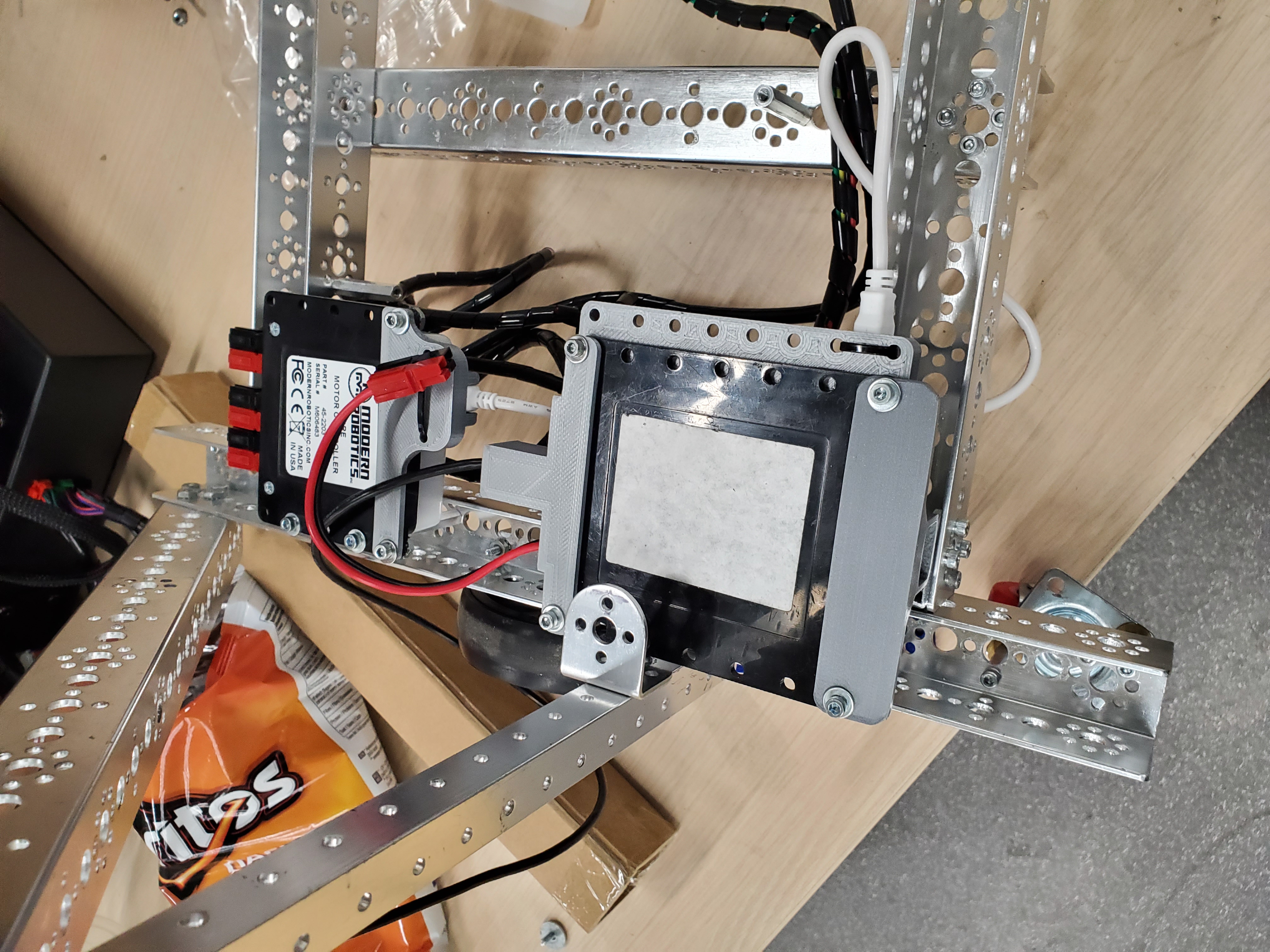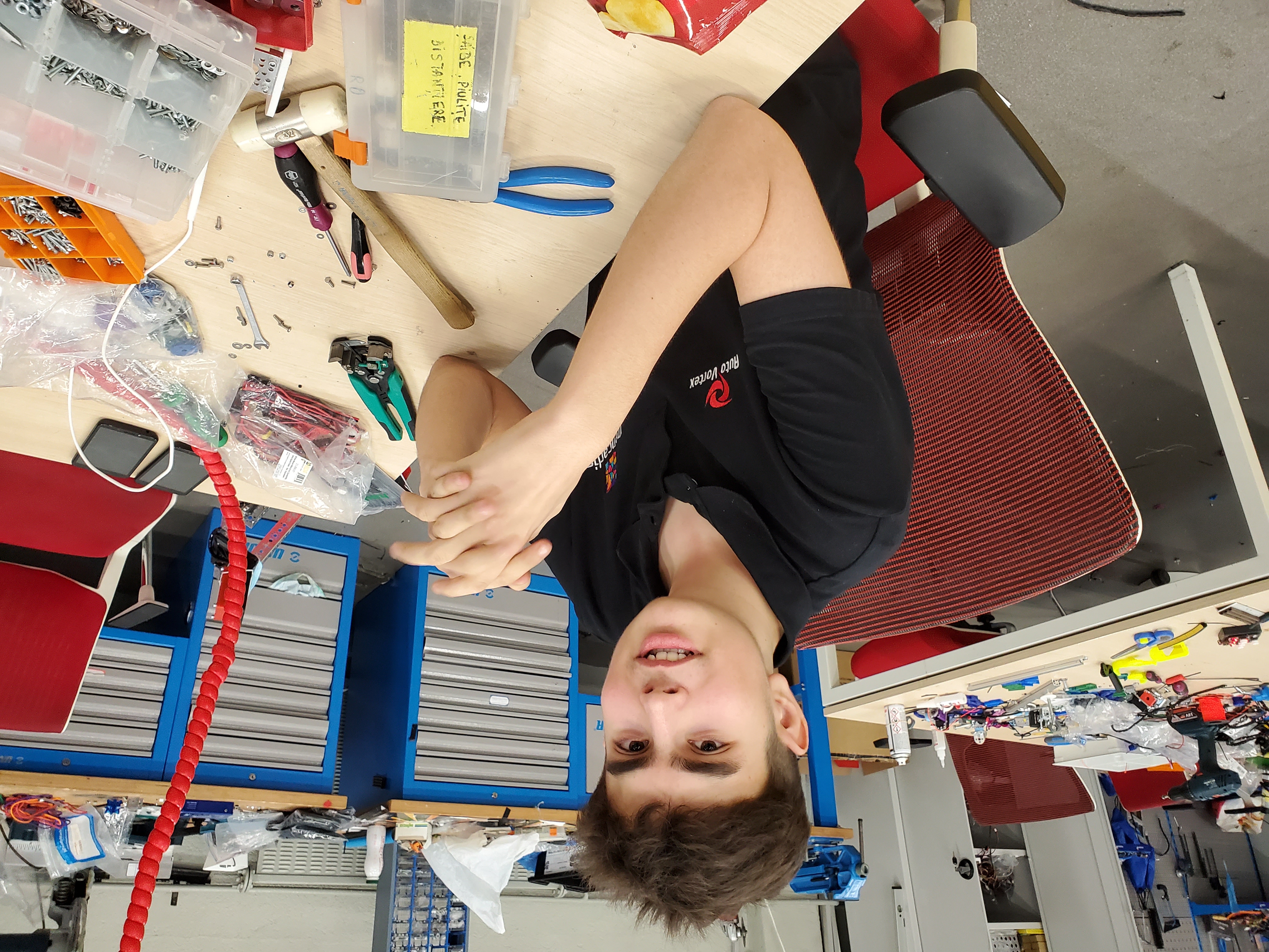 We started with the base robot, that we already did one month ago when we heard about this virus and we updated all the features. The base of the robot is built from robust tetrix channels that we use for our First Tech Challenge competition robots. The first version of the robot had electronics from modern robotics: a motor controller and a Core Power Interface. We used two android phone with special designed applications for the robot controller and for the driver station to control the robot. We also 3D printed some parts that we managed to create using PC Solidworks design software. We use a LCD with a face animation and also a special designed Raspberry Pi.