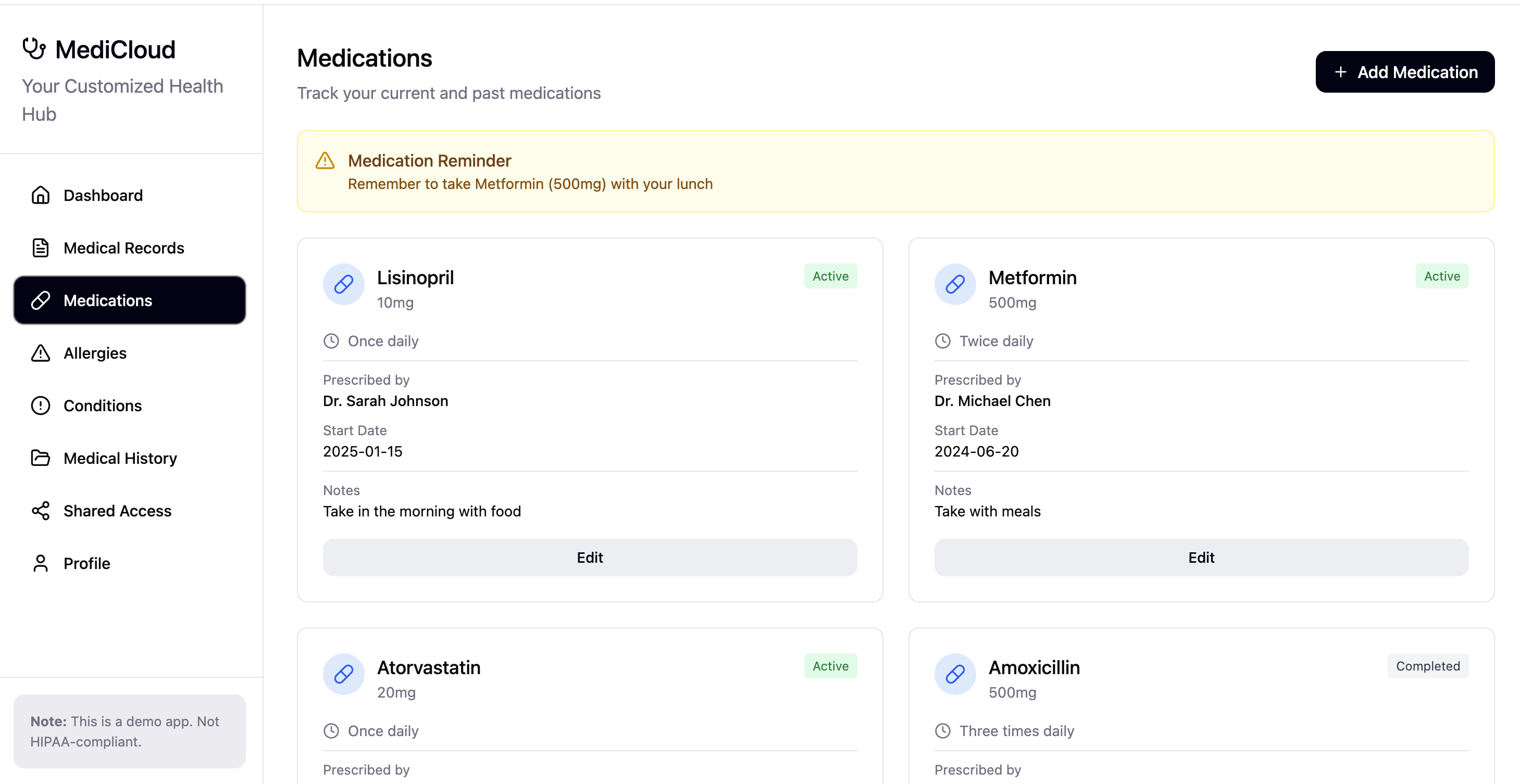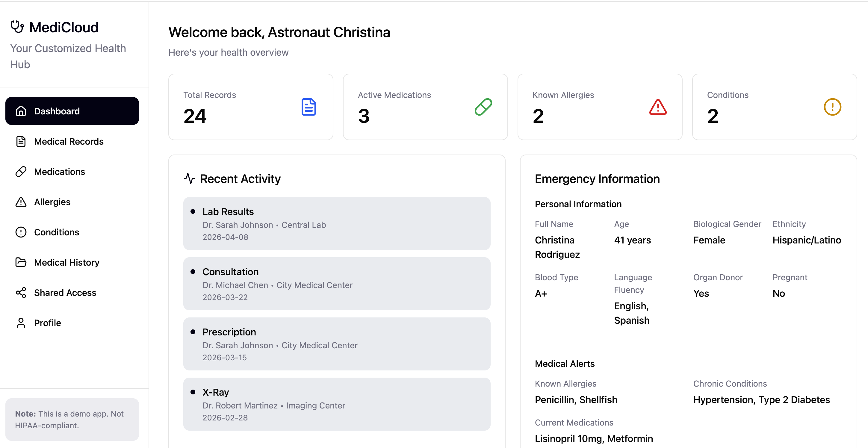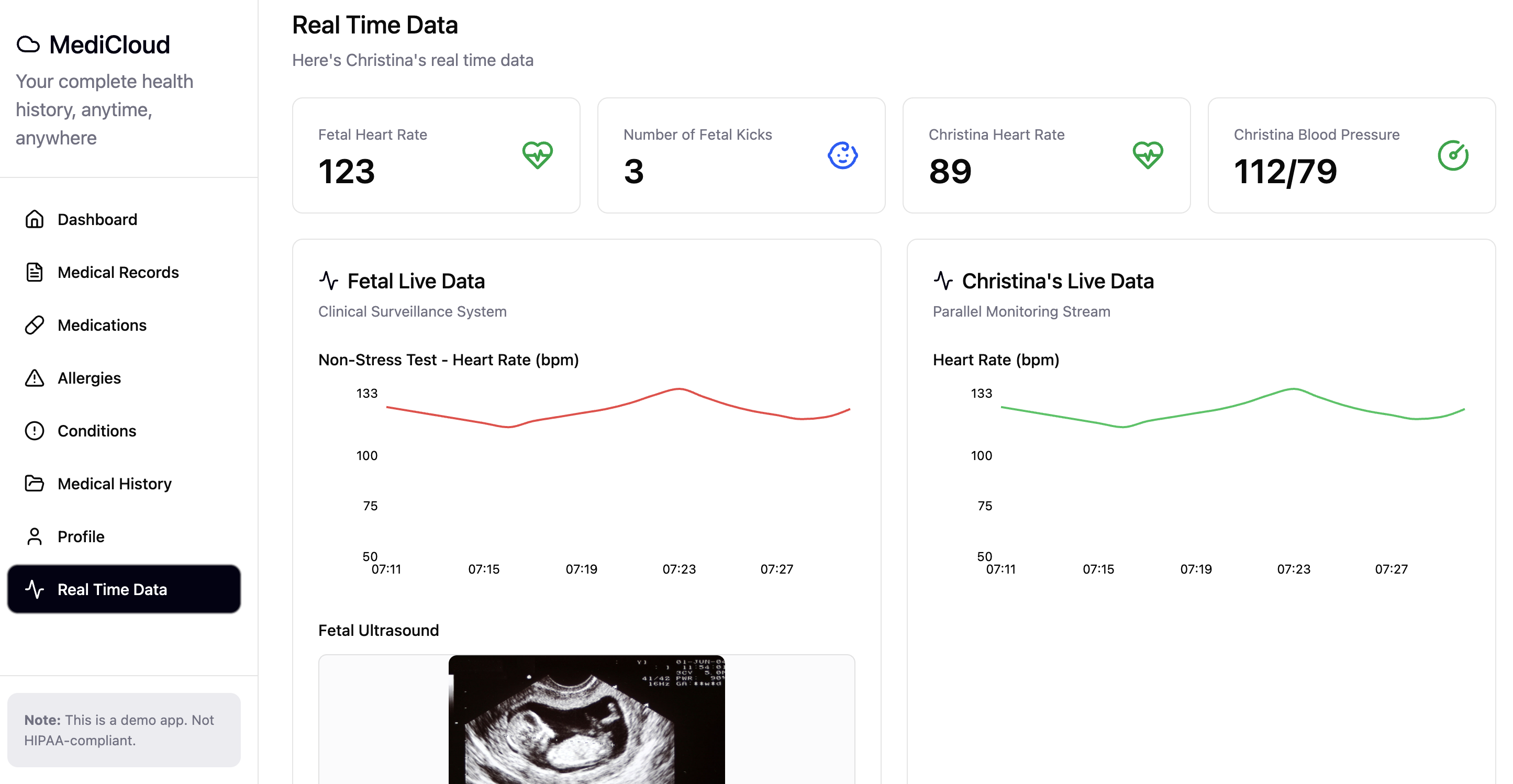 MediCloud is accessible to both patients and clinicians alike and can be fully integrated into existing healthcare systems, as it is secure and translatable. Equipped to incorporate sources of data from wearable devices, existing electronic health records (EHRs), and even live clinical surveillance systems, MediCloud is pioneering data accessibility and utilization in medical settings. Its target population is pregnant women, as the issues of poor coordination of care between multiple providers and the necessity for quick, comprehensive information are prominent.