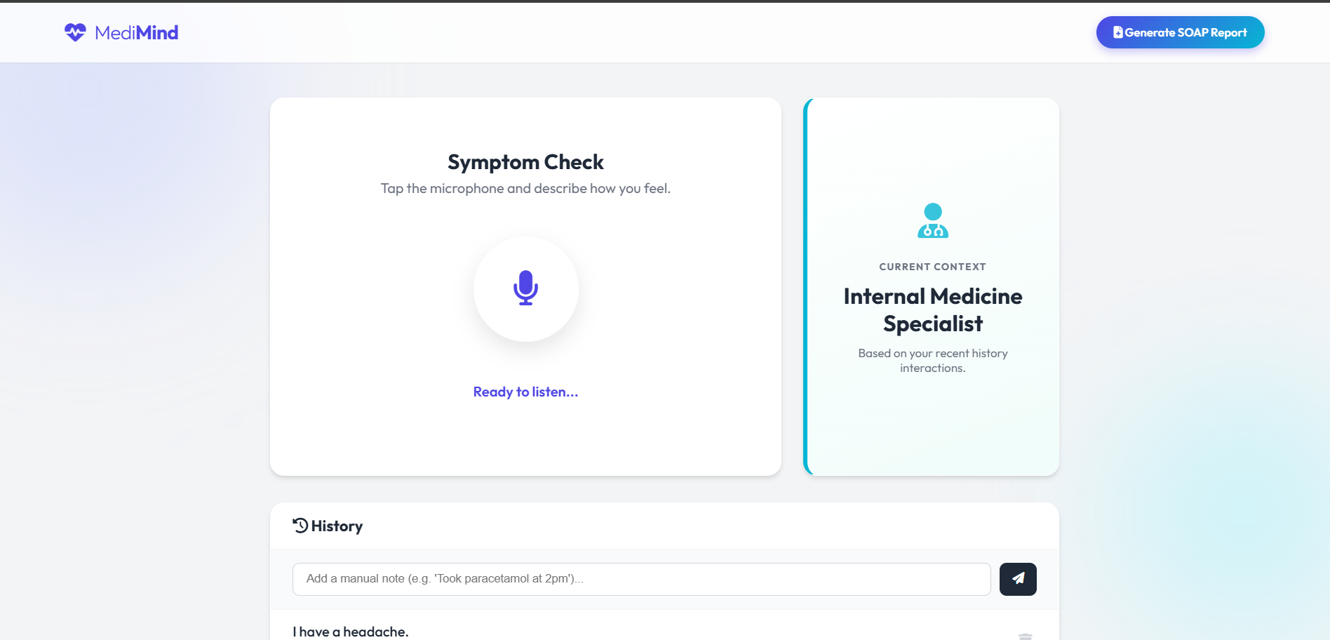 MediMind demonstrates how AI can move beyond chat-style interactions into decision-support systems that respect time, context, and safety. While not a replacement for medical professionals, it serves as a proof-of-concept for intelligent triage, clinical handoff automation, and emergency-aware human-AI interaction.