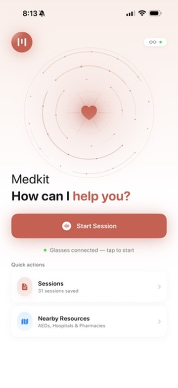 If you go quiet during an active emergency, Medkit proactively checks in, "Still pressing on the wound?", "Still applying chest compressions?", etc. because silence during treatment might mean you need encouragement, not that you're done. Every session is automatically recorded locally: video, full transcripts, and an EMS-ready report that can be handed directly to paramedics when they arrive, giving them a timeline of what happened, what was observed, and what actions were taken before they got there.