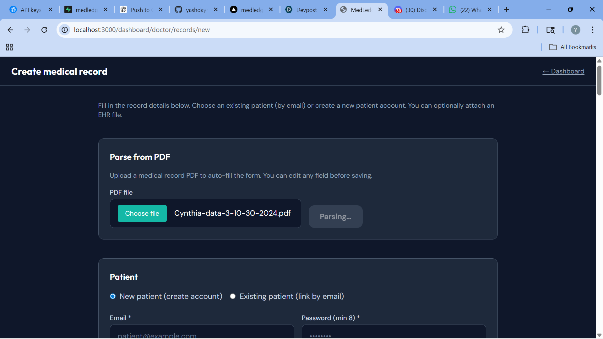 MedLedger AI is a secure, AI-powered healthcare intelligence platform. It allows users to upload medical records (PDFs), extracts structured data, summarizes patient history, and detects anomalies or suspicious patterns in real time.