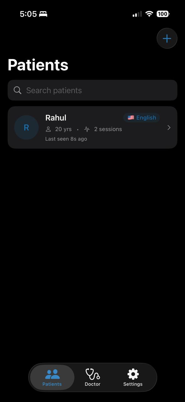 We also had to think hard about the UI problem of one device serving two people. A split screen felt cramped on a phone. A full flip between two distinct modes — one designed for a stressed patient, one designed for a working clinician — turned out to be the right call both technically and humanistically.