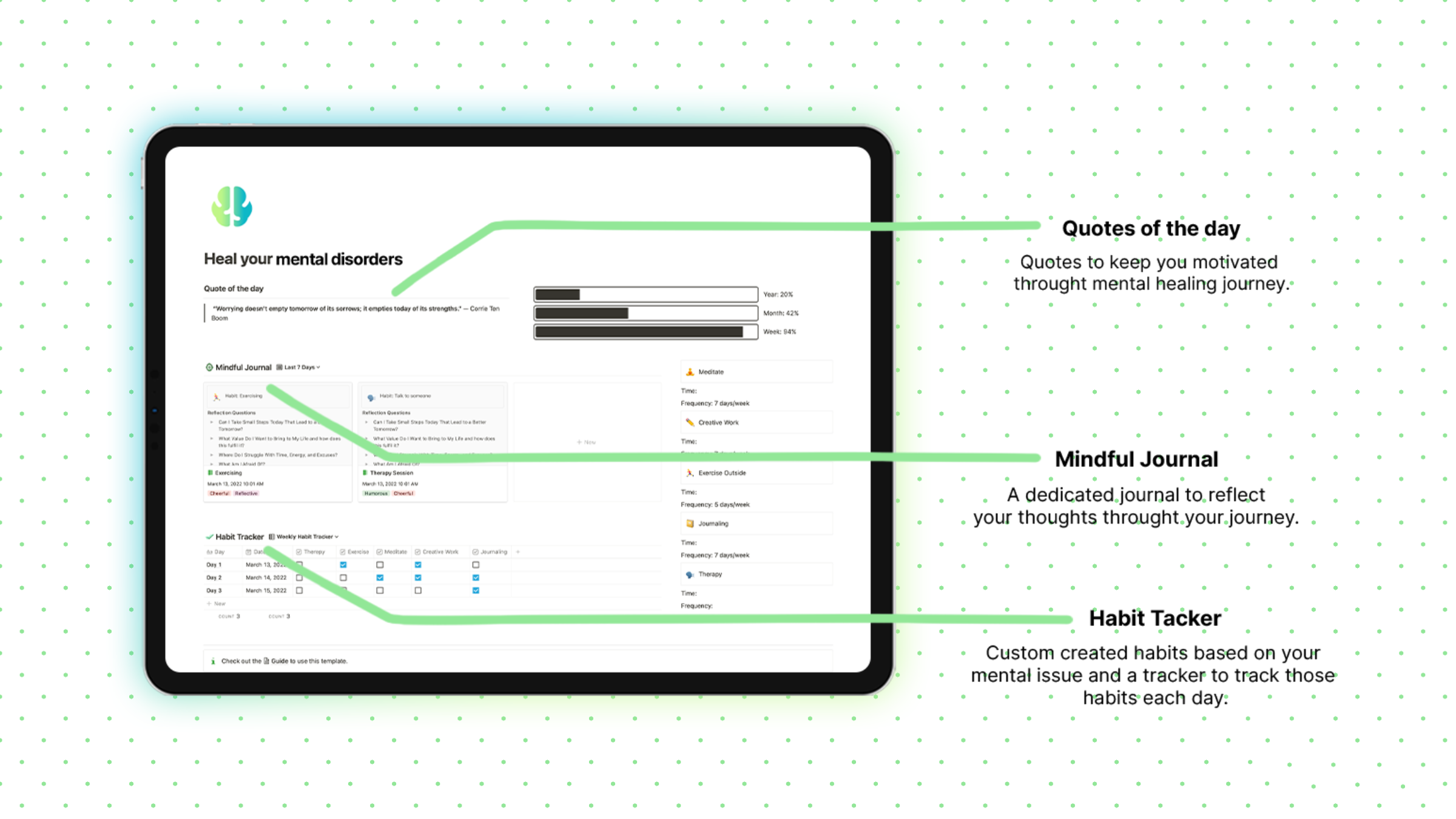 Track habits to improve your mental health A dedicated habit tracker is built to keep you accountable to follow the habit every day to improve your mental health.