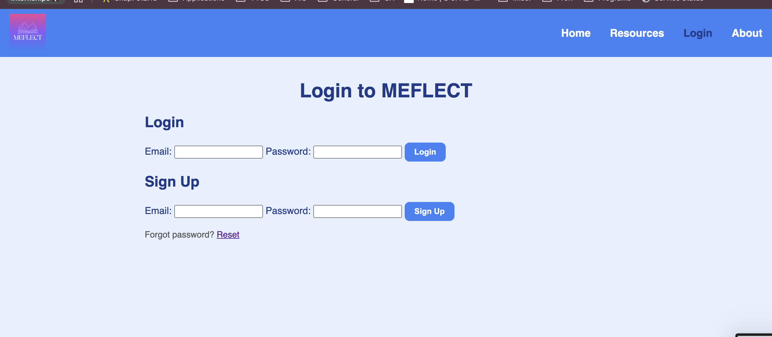 We built Meflect using HTML, CSS, and JavaScript for the front-end, ensuring that it was both responsive and intuitive. We focused on making the app easy to use and visually appealing, while keeping the functionality simple.