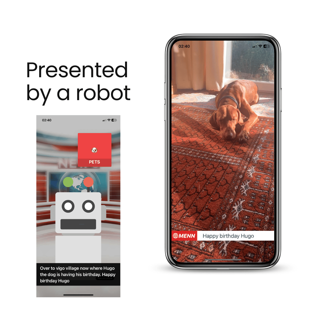 Users from a friend group post short videos. The app collates them and then makes a daily news report which it shares with the group. Gemini writes the script, captions and chooses the graphics (emojis at the moment but later generative art).