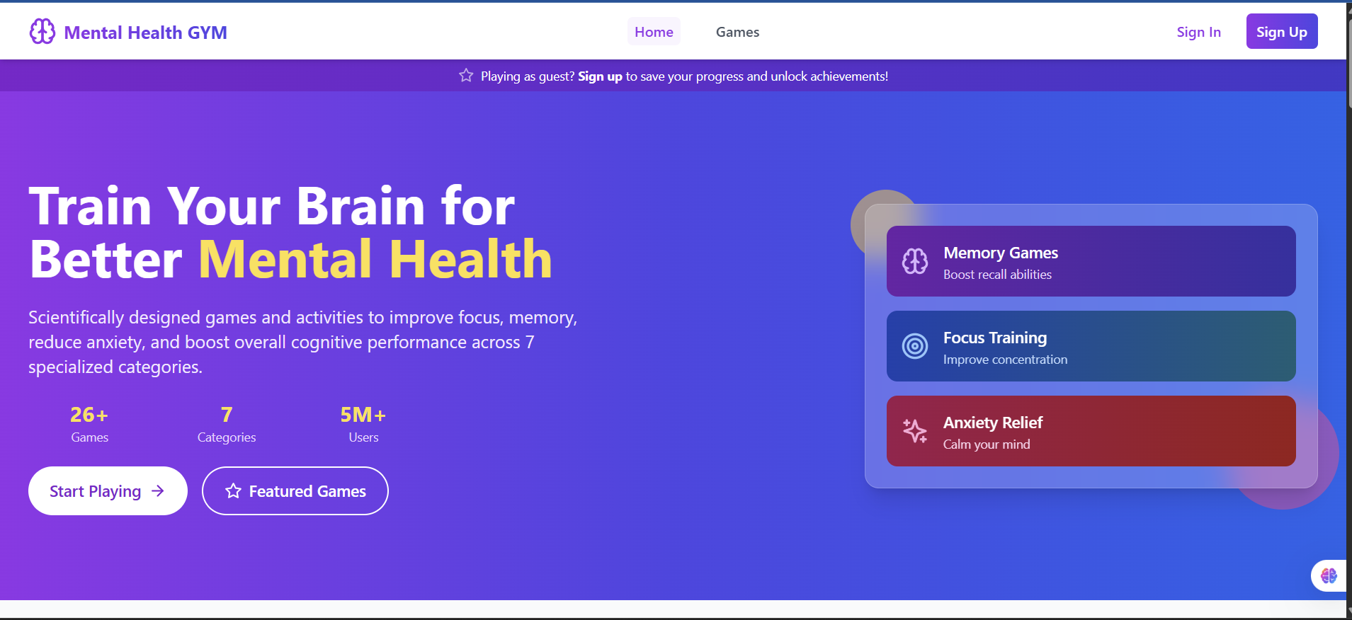 🧠 Inspiration Mental health is often overlooked compared to physical fitness. We wanted to create a space where users can actively build and maintain mental resilience—just like going to a gym for the body.