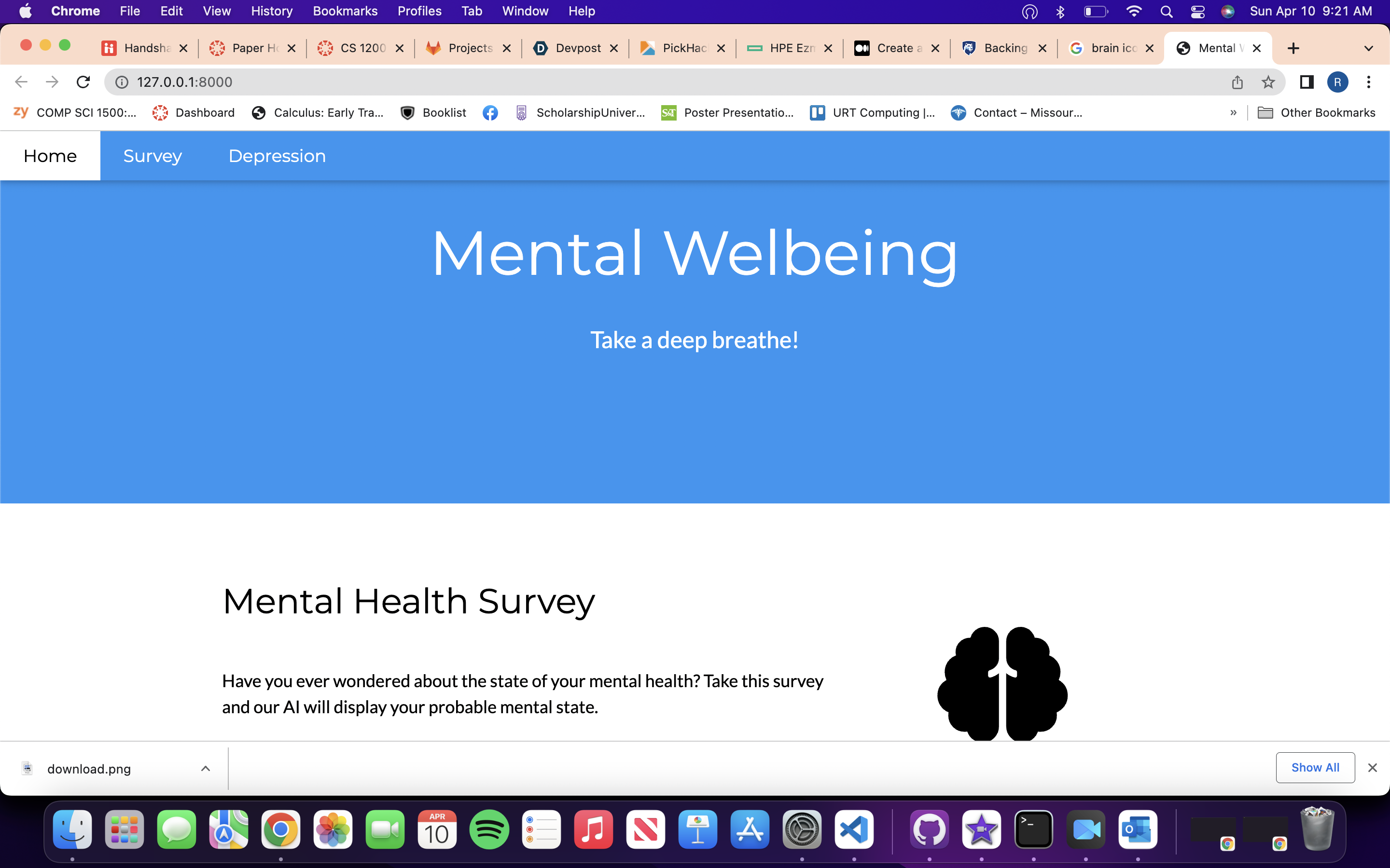 Our project includes a website that has a survey which asks the user 17 questions about their mental health. When the user submits their answers, our model will assess them and output the mental state of the user.