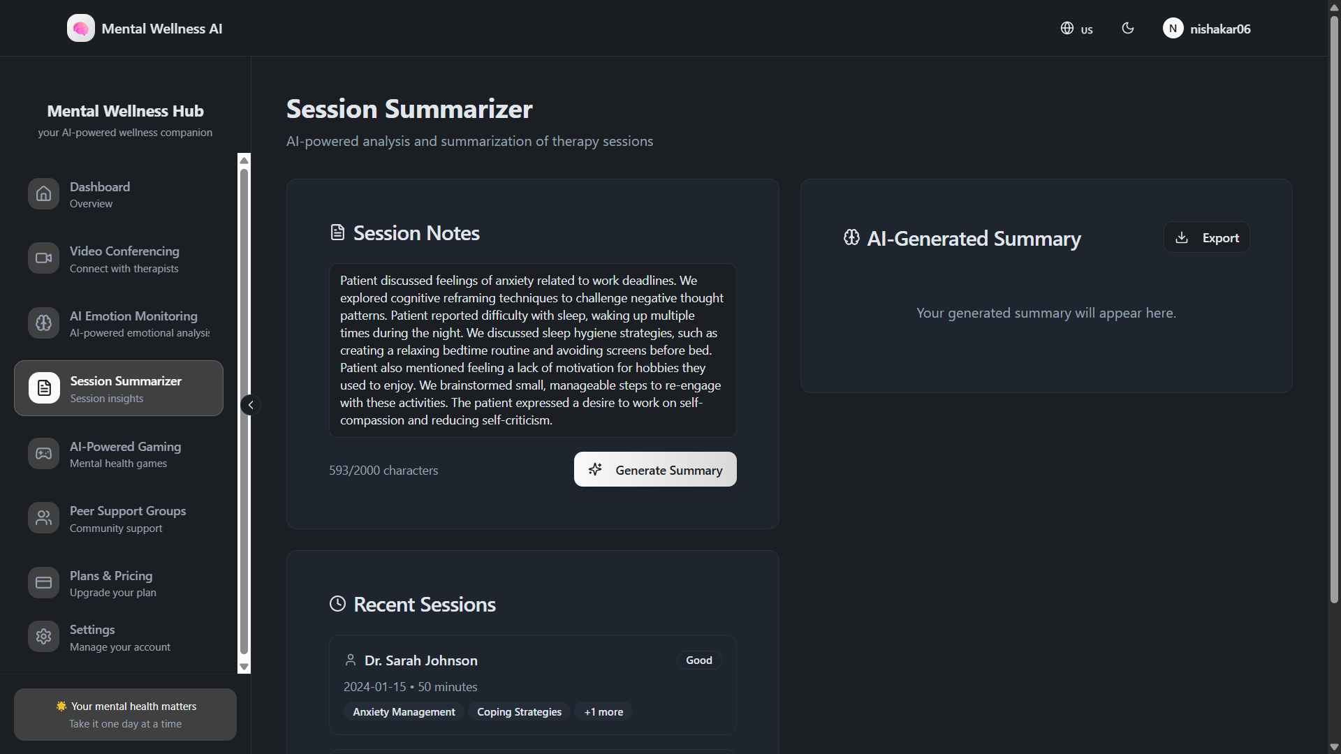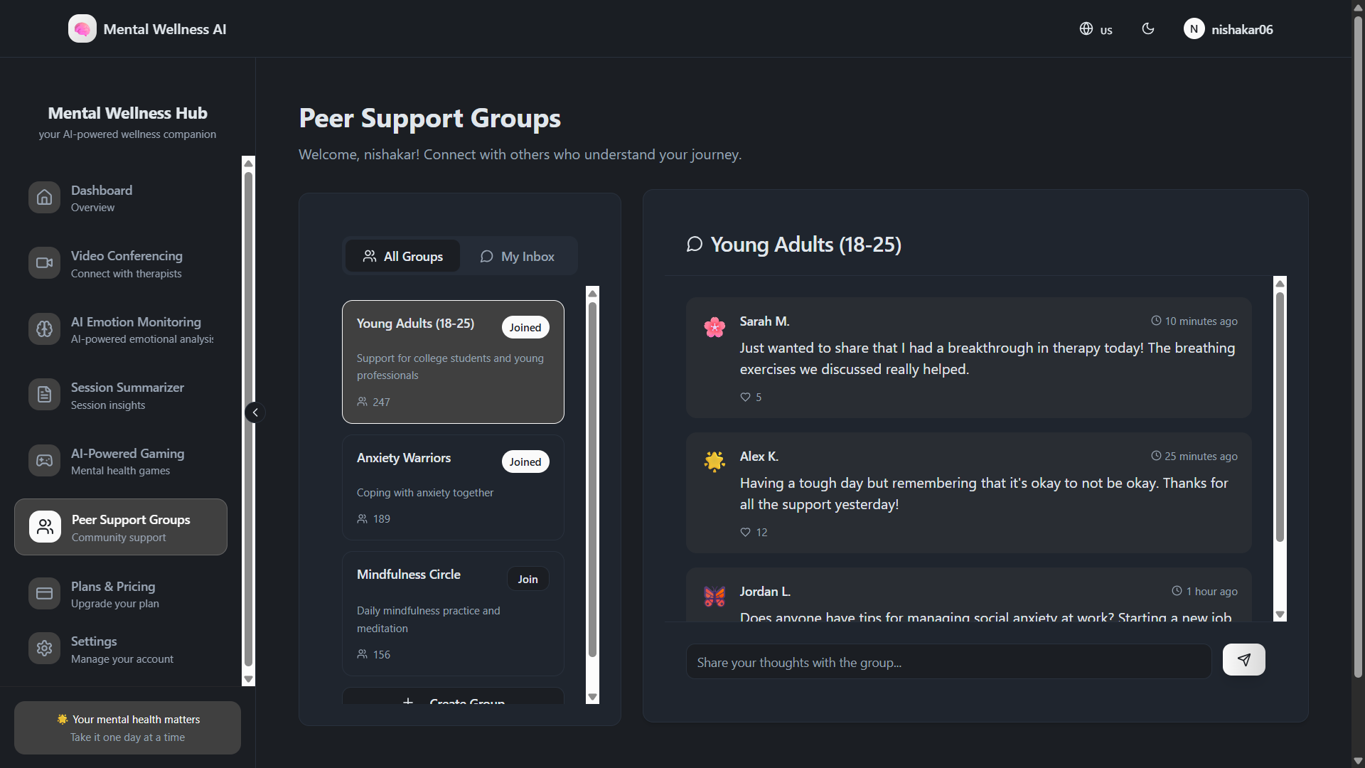 We are building Mental Wellness AI, a generative AI-powered mental health companion designed specifically for youth. The system leverages natural language processing and emotional intelligence to provide empathetic conversations, detect mood patterns, and generate personalized motivational content such as affirmations, visuals, or calming soundscapes. It aims to promote emotional well-being, self-reflection, and stress management in a private, judgment-free digital environment. Our focus is to create an accessible, ethical, and supportive AI platform that bridges the gap between mental wellness awareness and real-time emotional assistance.