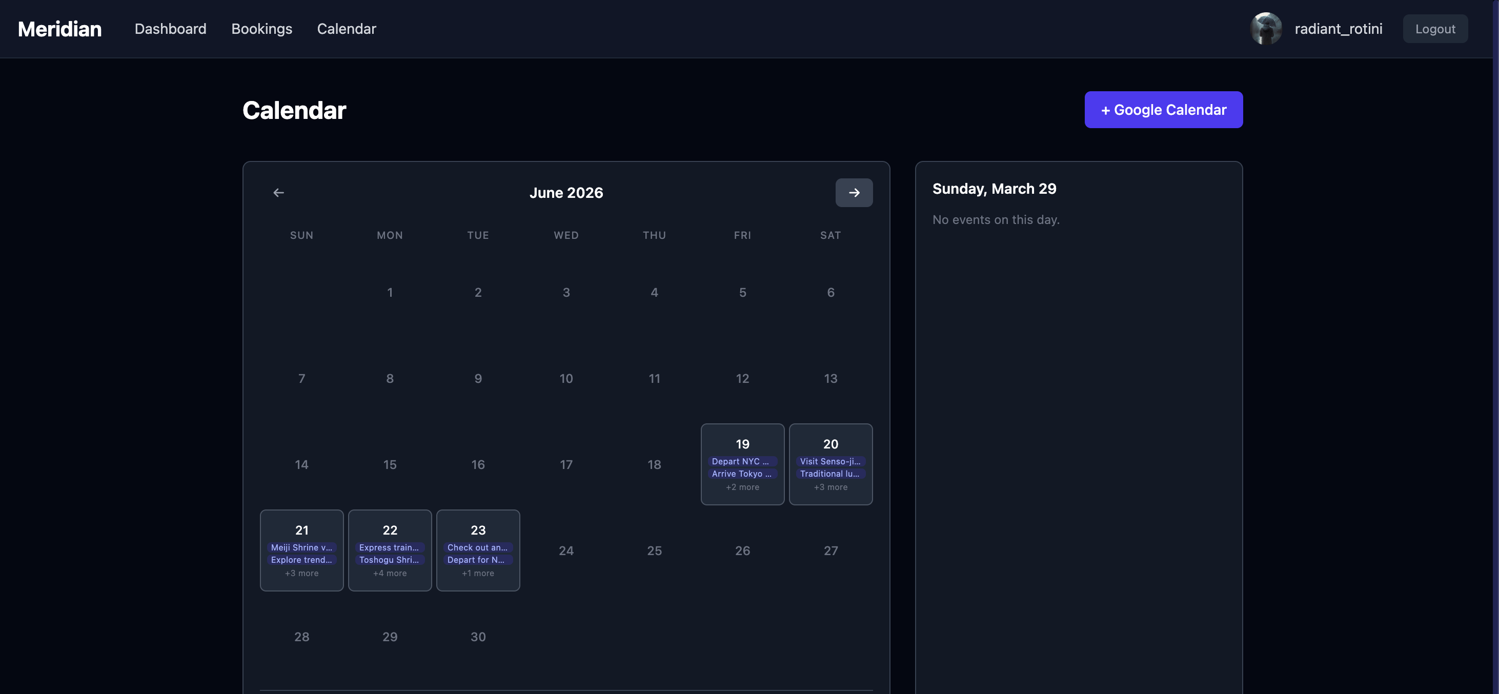 While building Meridian, one of the challenges we ran into was managing state. Since the itinerary is a changing document that updates every time someone suggests something new or accepts/denies a suggestion, keeping the UI consistent without stale renders or race conditions took a lot more work than expected. We also had a little bit of trouble with deployment, specifically with getting all the authentication and database working in the production environment.
