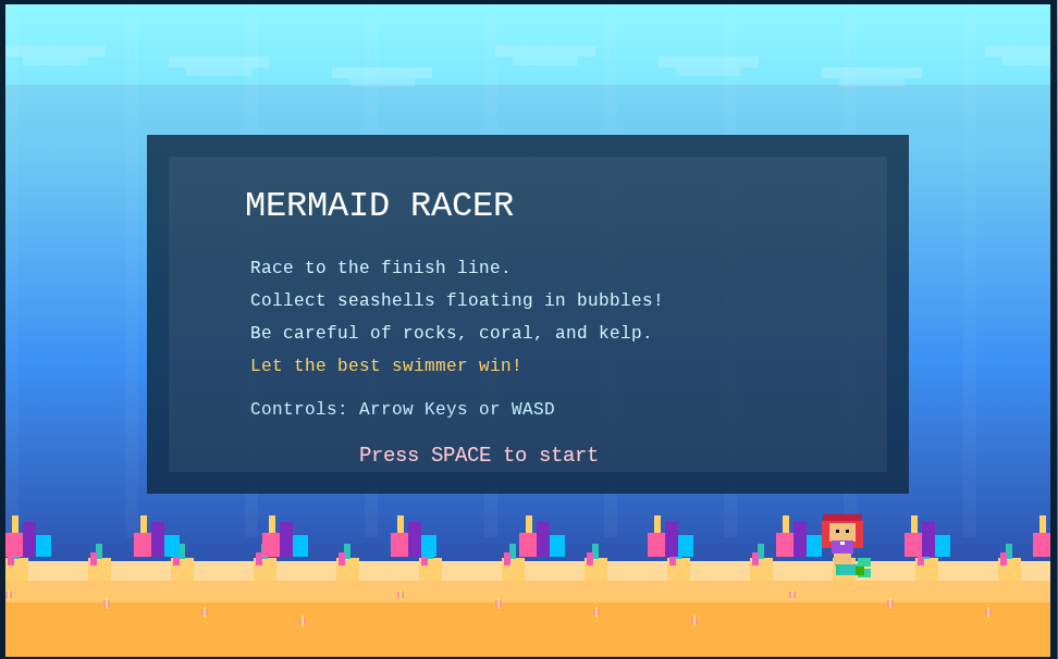 Our game was inspired by The Little Mermaid and the idea of creating a fun underwater world filled with sea creatures. We wanted to turn that theme into something interactive, so we decided to make a racing game where characters move through an ocean track.
