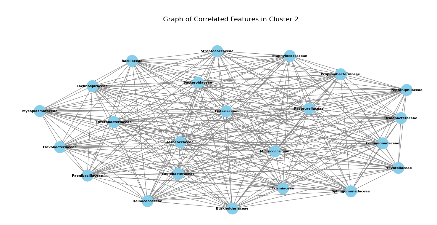 Obtenir un graf de les correlacions entre microbiotes, amb color vert si es relacionaven i en vermell si es relacionaven negativament.