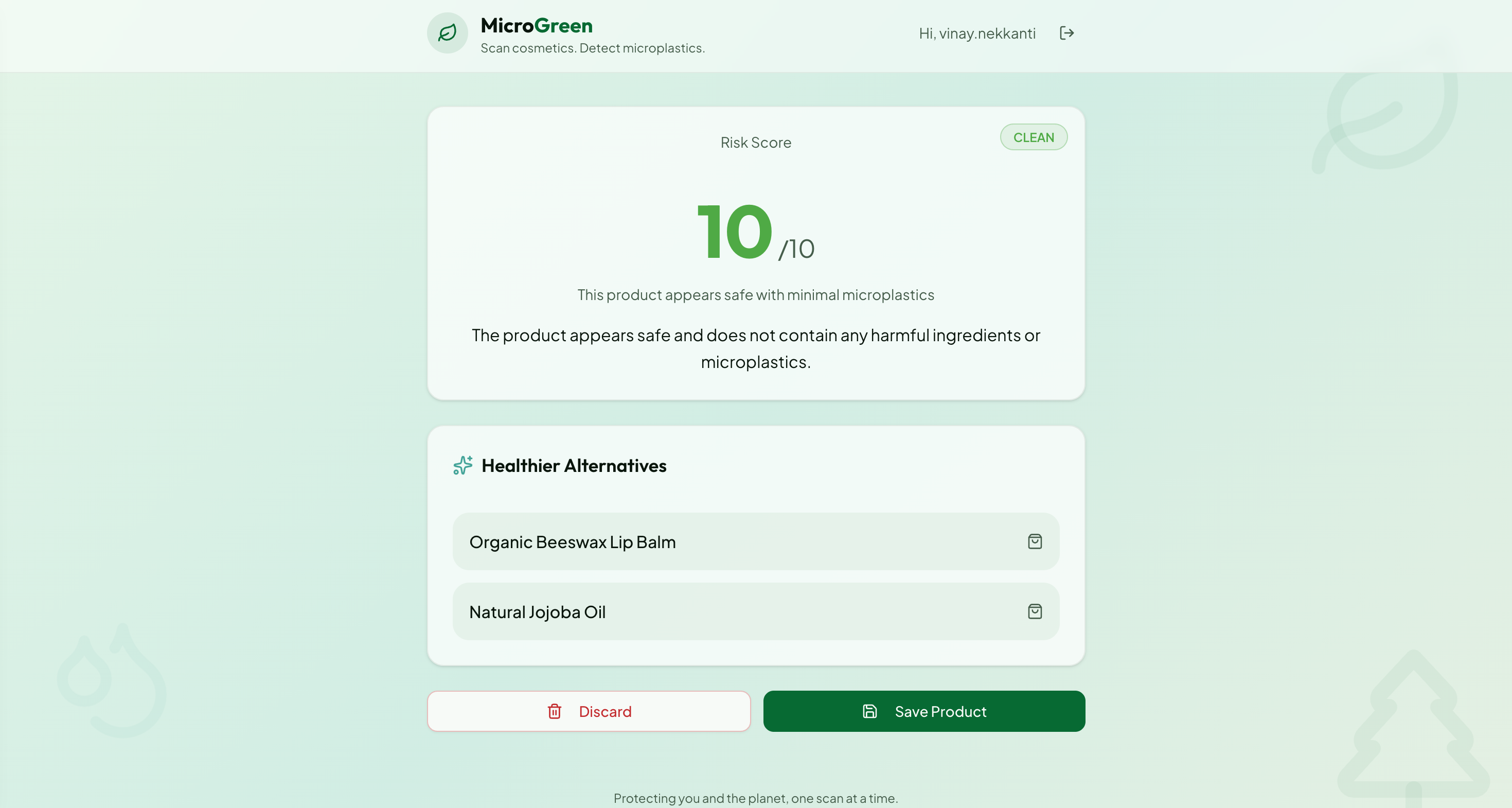 While we live in a world where consumerism is taking over, it's important to understand the impacts it has on the average person. An important by product of this is the increased production of microplastics, more specifically, the microplastics in our daily cosmetics/skincare. I've developed a passion in skincare world and understood the negative effects we could have if we don't understand what's actually being put into our bodies. MicroGreen help with that, by scanning a picture of the ingredients in their cosmetic/skincare products, the application return a score of how clean it is from microplastics, and recommends similar products that have less microplastics in them. I built this application using AWS services such as Bedrock, S3, Lambda, IAM, and API Gateway. Being my first exposure to these tools, I struggled with understand how to use and implement them to create an efficient product, but thanks to the helpful services the hackathon provided us with, I was able to overcome them. I'm proud of creating an application that really helps the quality of our bodies and the environment and hope to take this further through creating weekly updates on how many microplastics the user avoided, saving past scanned products, and much more!