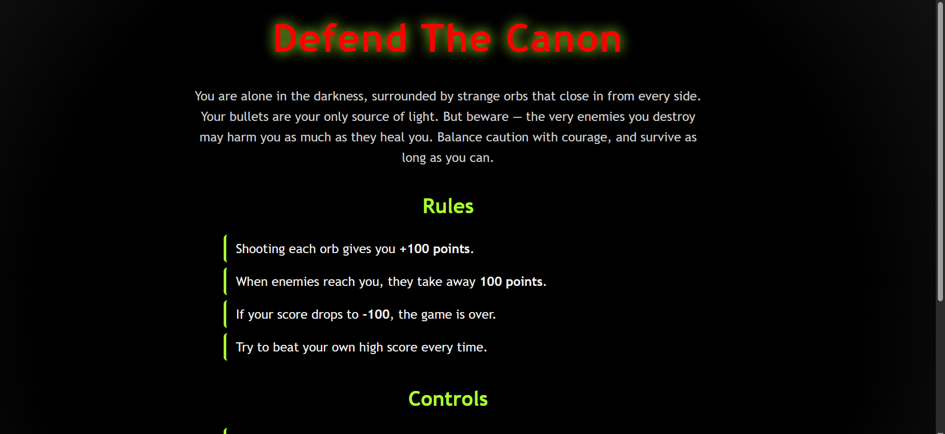 I used HTML5 Canvas for all the graphics — including the cannon, its muzzle, bullets, enemies, and the glowing light effect.