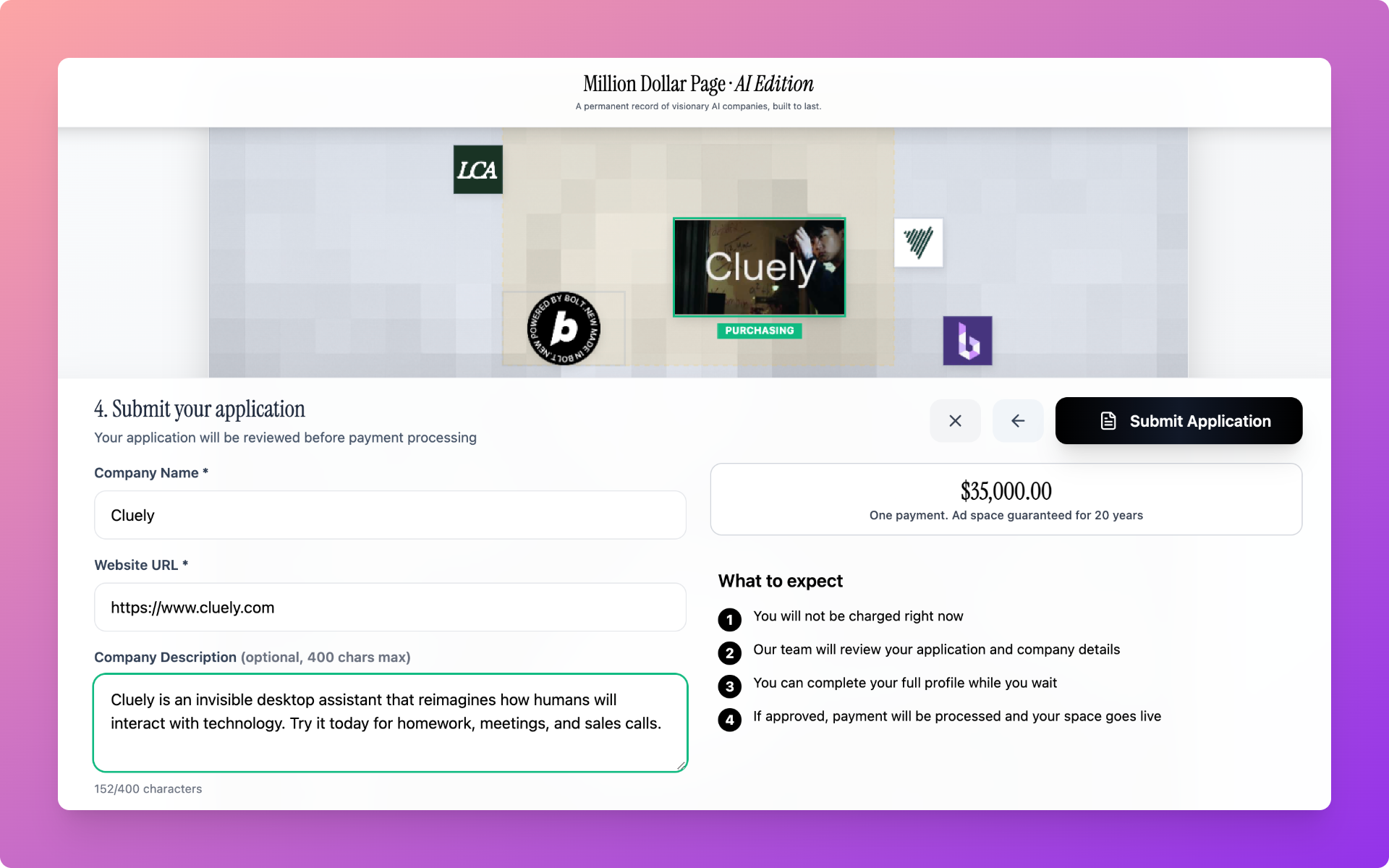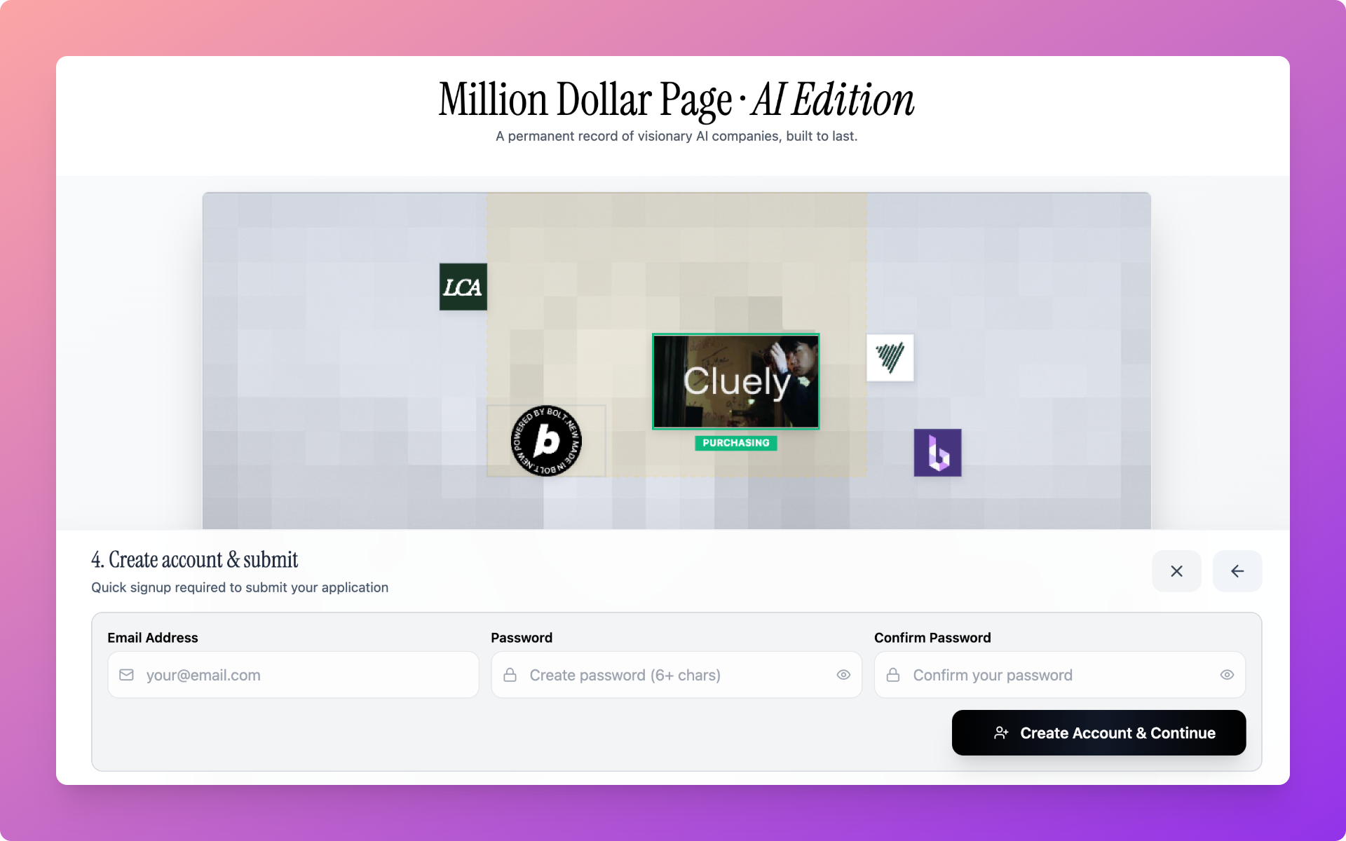 05 - Enter company information before you submit yoru application on milliondollarpage.ai