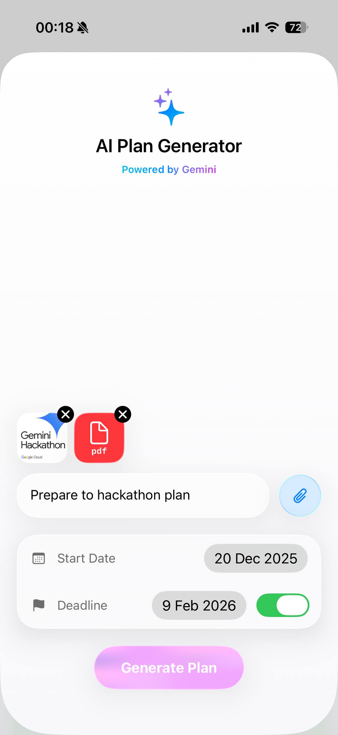 An app for creating and storing plans in the form of a roadmap. Users organize tasks, establish connections between them, and clearly see the dependencies of each step, all displayed in a clear, visual Mind map layout. You type a goal, import PDFs, notes, or images, and Gemini turns them into structured tasks on the same canvas. All your ideas and plans in your pocket.