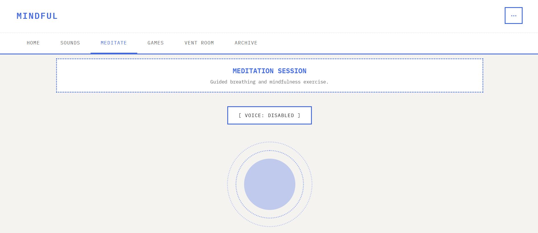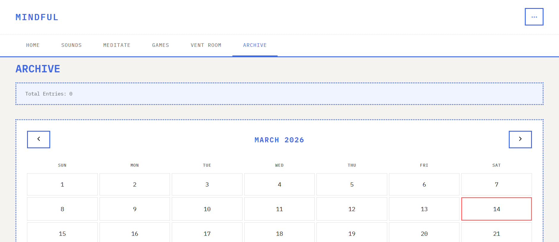 Building Mindful deepened my understanding of React state management and full-stack integration. I also learned a tremendous amount about user-centered design specifically how visual hierarchy, whitespace, and color theory directly impact a user's emotional state, which is critical when building for mental health.